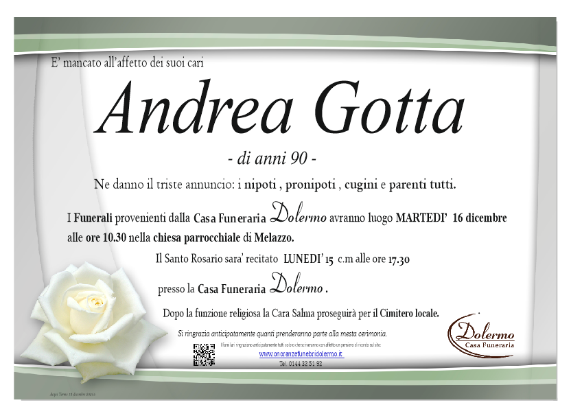 I familiari ringraziano anticipatamente tutti coloro che parteciperanno alla cerimonia funebre