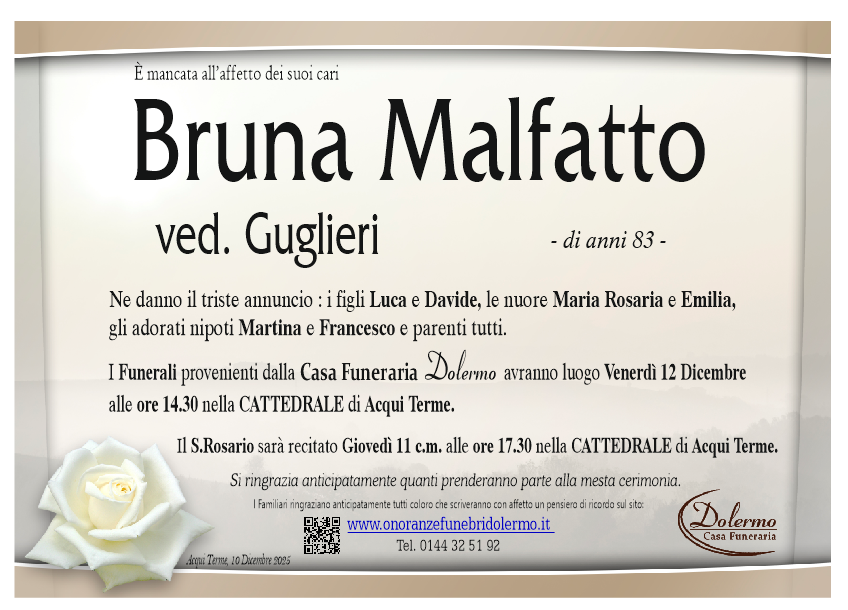I familiari ringraziano anticipatamente tutti coloro che parteciperanno alla cerimonia funebre