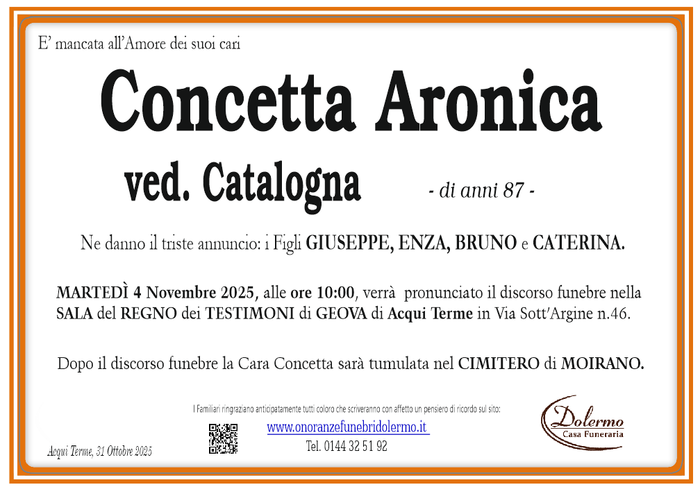 I familiari ringraziano anticipatamente tutti coloro che parteciperanno alla cerimonia funebre