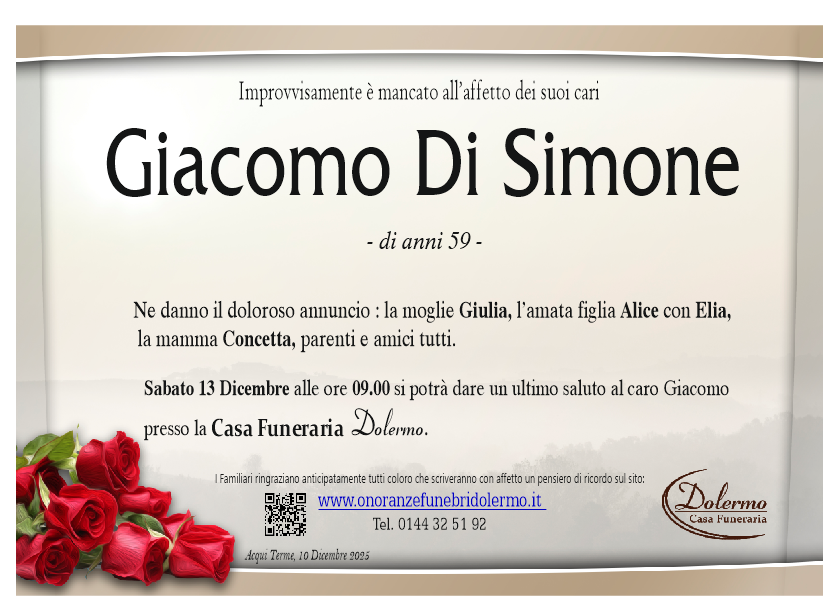 I familiari ringraziano anticipatamente tutti coloro che parteciperanno alla cerimonia funebre