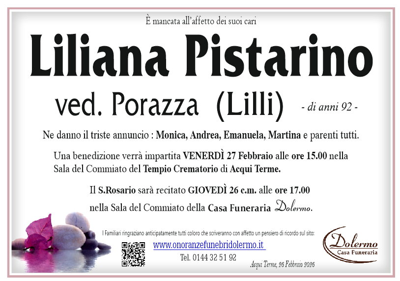 I familiari ringraziano anticipatamente tutti coloro che parteciperanno alla cerimonia funebre