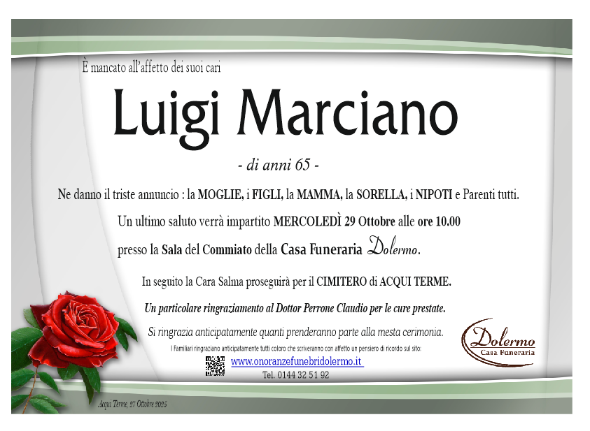 I familiari ringraziano anticipatamente tutti coloro che parteciperanno alla cerimonia funebre
