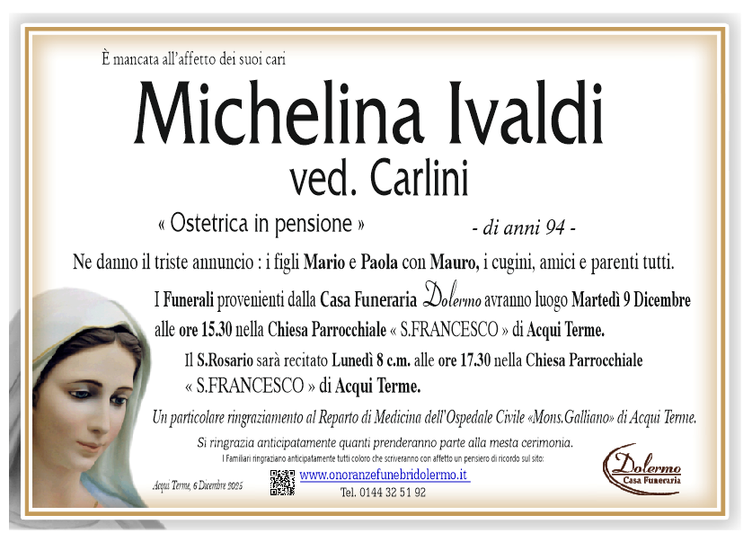 Clicca il pulsante qui sotto per visualizzare sulla mappa il luogo dove riposa MICHELINA IVALDI CARLINI.