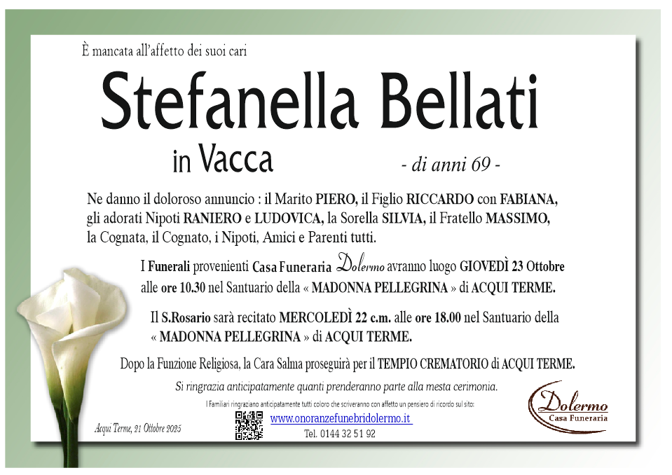 I familiari ringraziano anticipatamente tutti coloro che parteciperanno alla cerimonia funebre