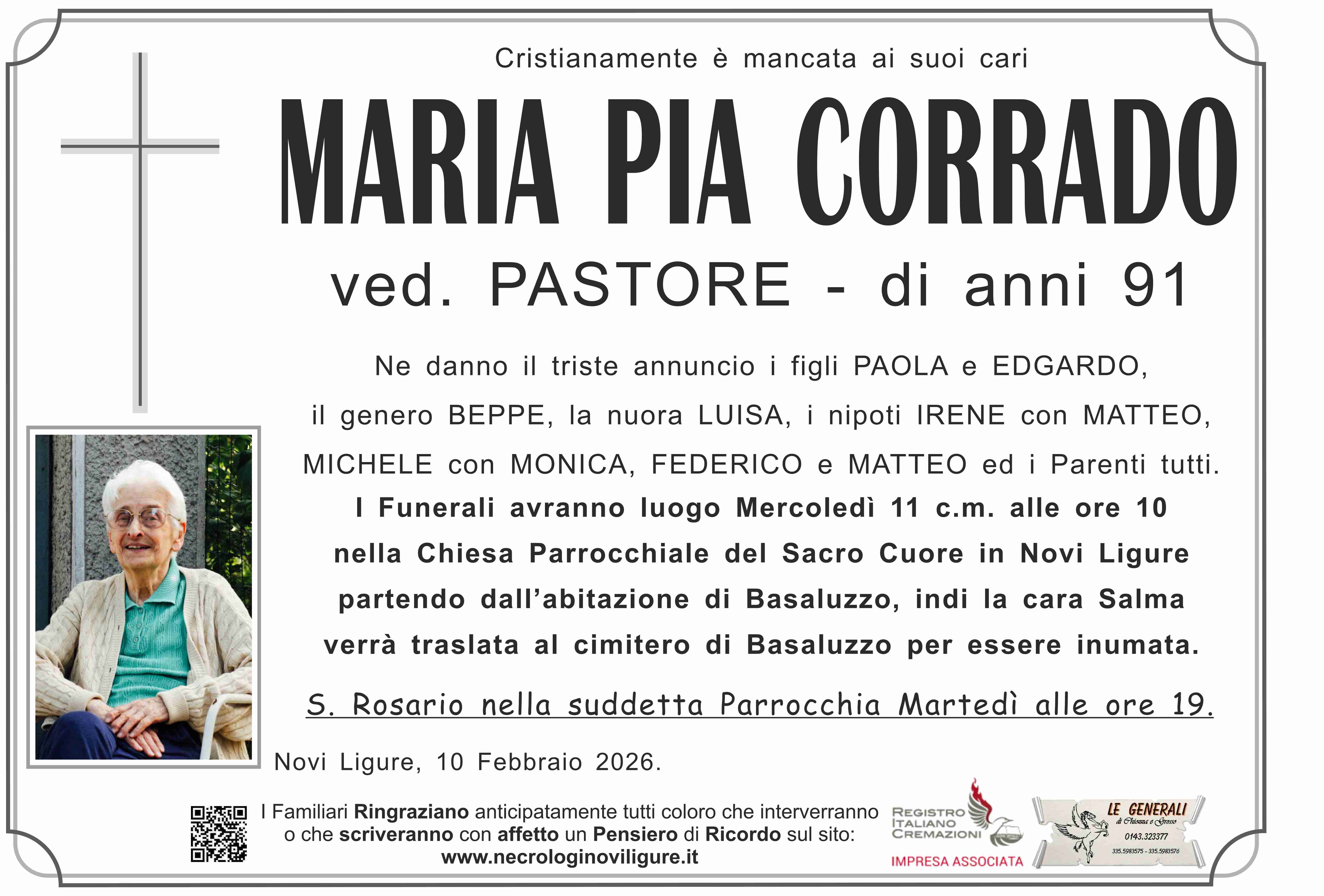 I familiari ringraziano anticipatamente tutti coloro che parteciperanno alla cerimonia funebre
