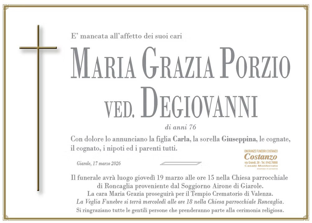 I familiari ringraziano anticipatamente tutti coloro che parteciperanno alla cerimonia funebre