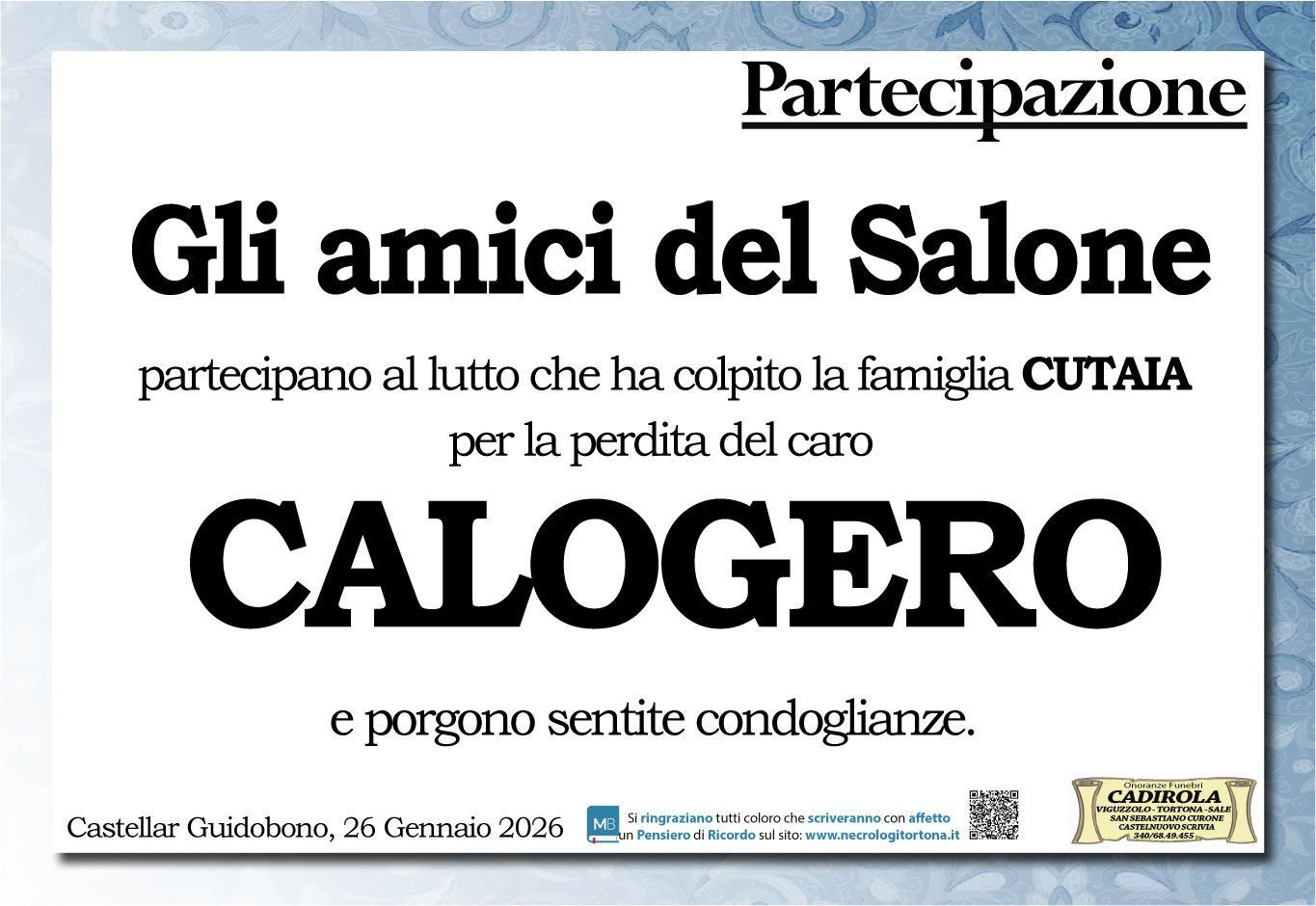 I familiari ringraziano anticipatamente tutti coloro che parteciperanno alla cerimonia funebre