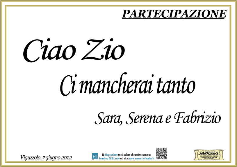 I familiari ringraziano anticipatamente tutti coloro che parteciperanno alla cerimonia funebre