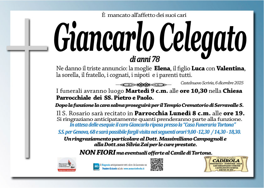 I familiari ringraziano anticipatamente tutti coloro che parteciperanno alla cerimonia funebre