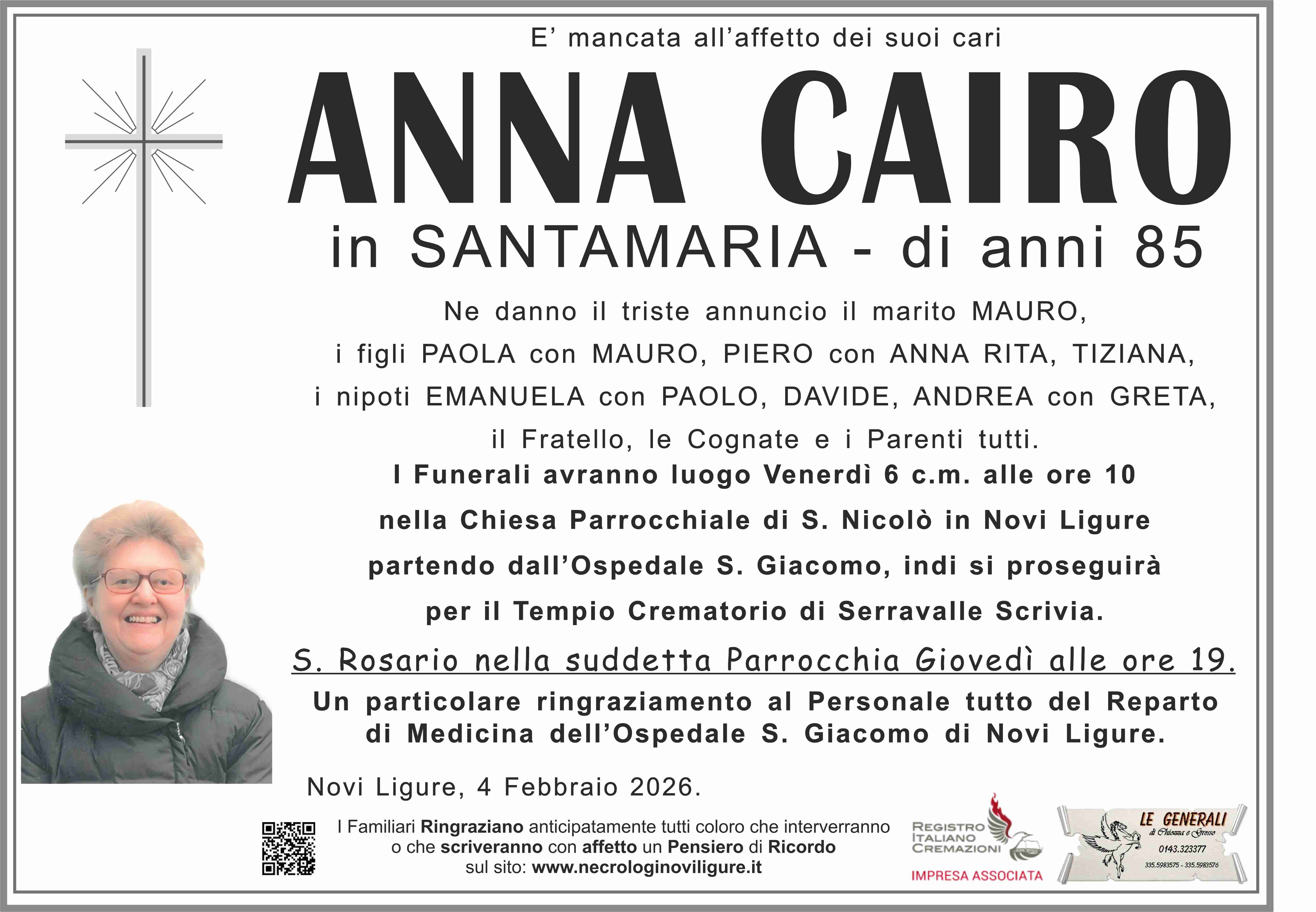 I familiari ringraziano anticipatamente tutti coloro che parteciperanno alla cerimonia funebre