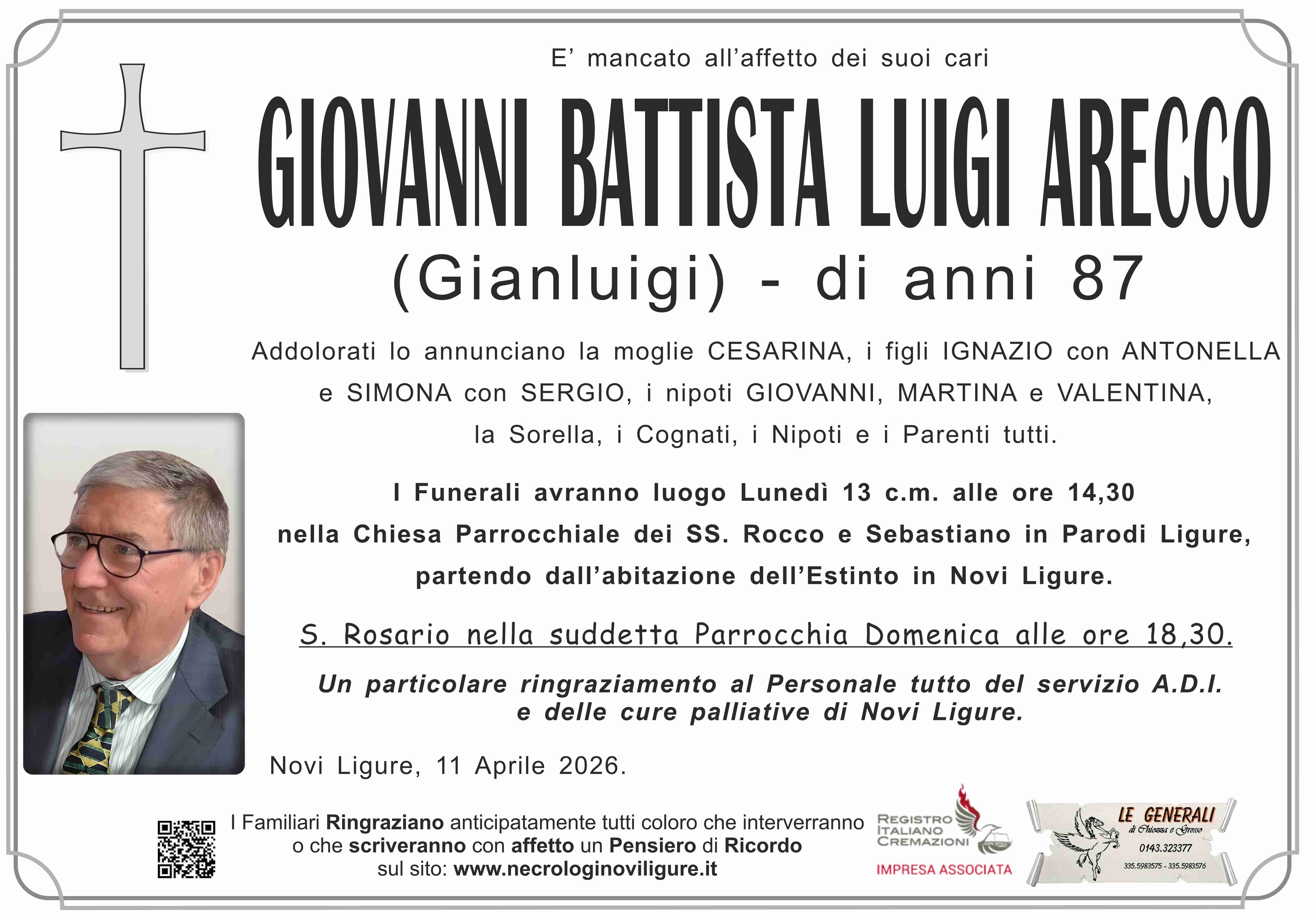 I familiari ringraziano anticipatamente tutti coloro che parteciperanno alla cerimonia funebre