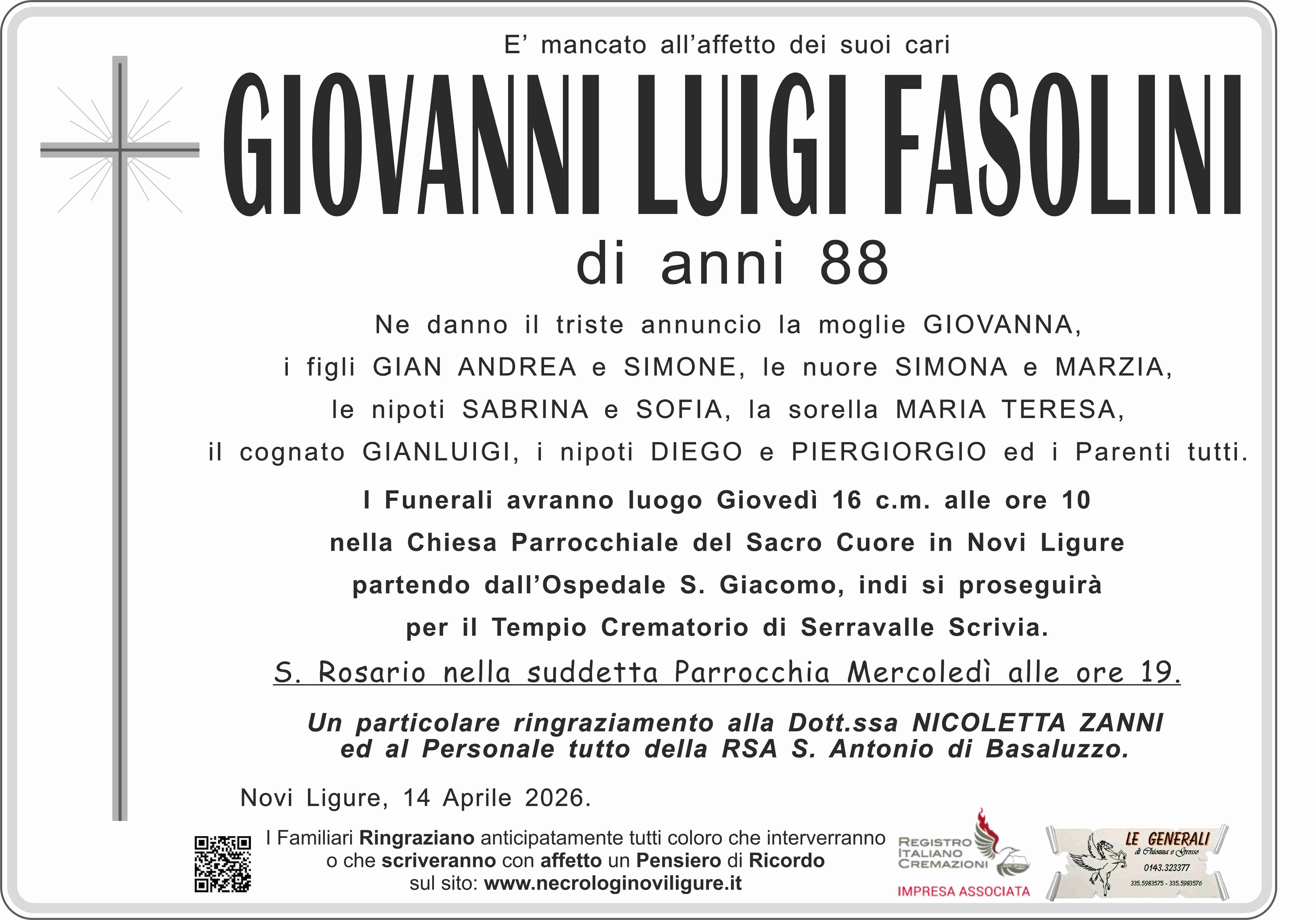 I familiari ringraziano anticipatamente tutti coloro che parteciperanno alla cerimonia funebre