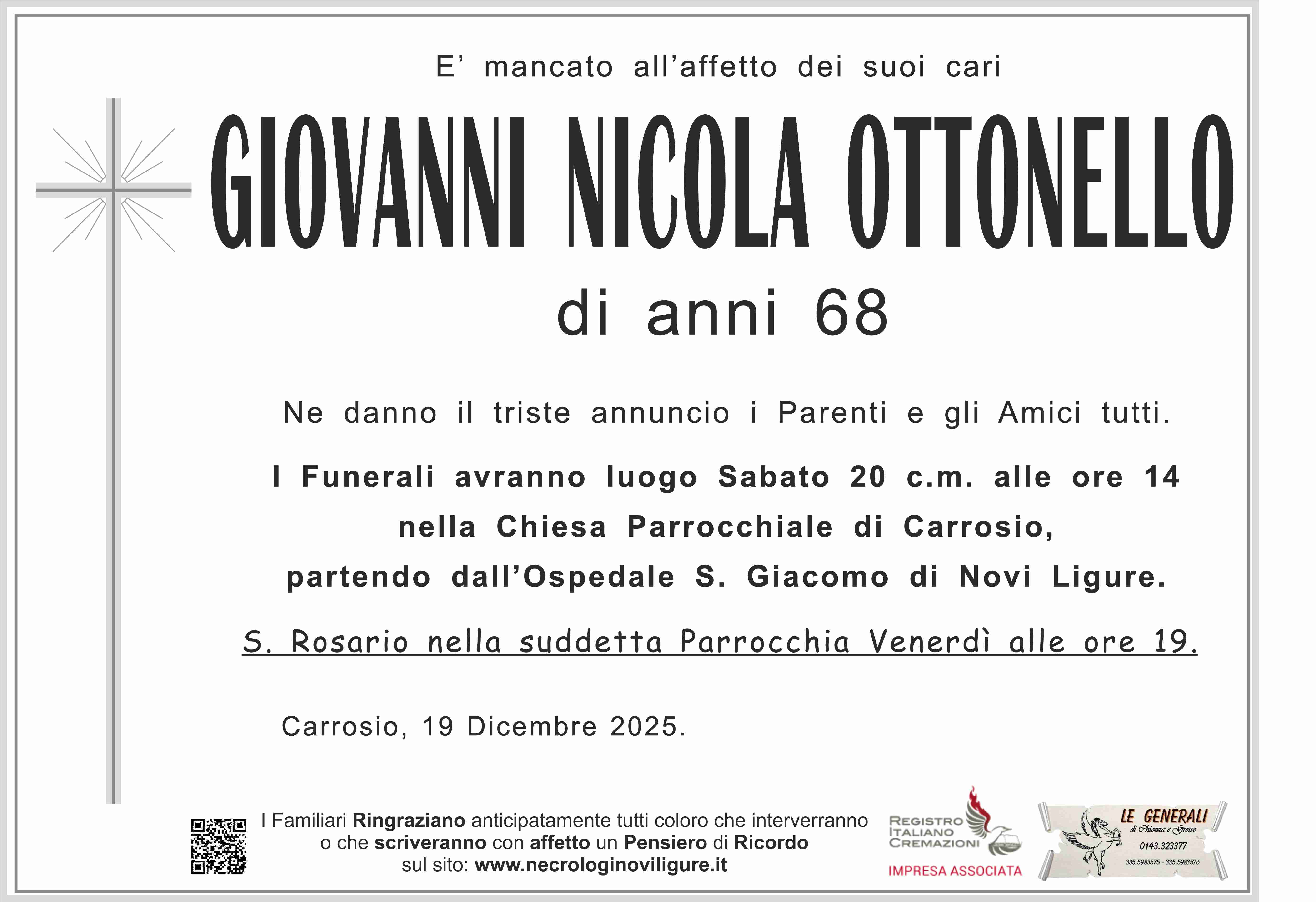 I familiari ringraziano anticipatamente tutti coloro che parteciperanno alla cerimonia funebre