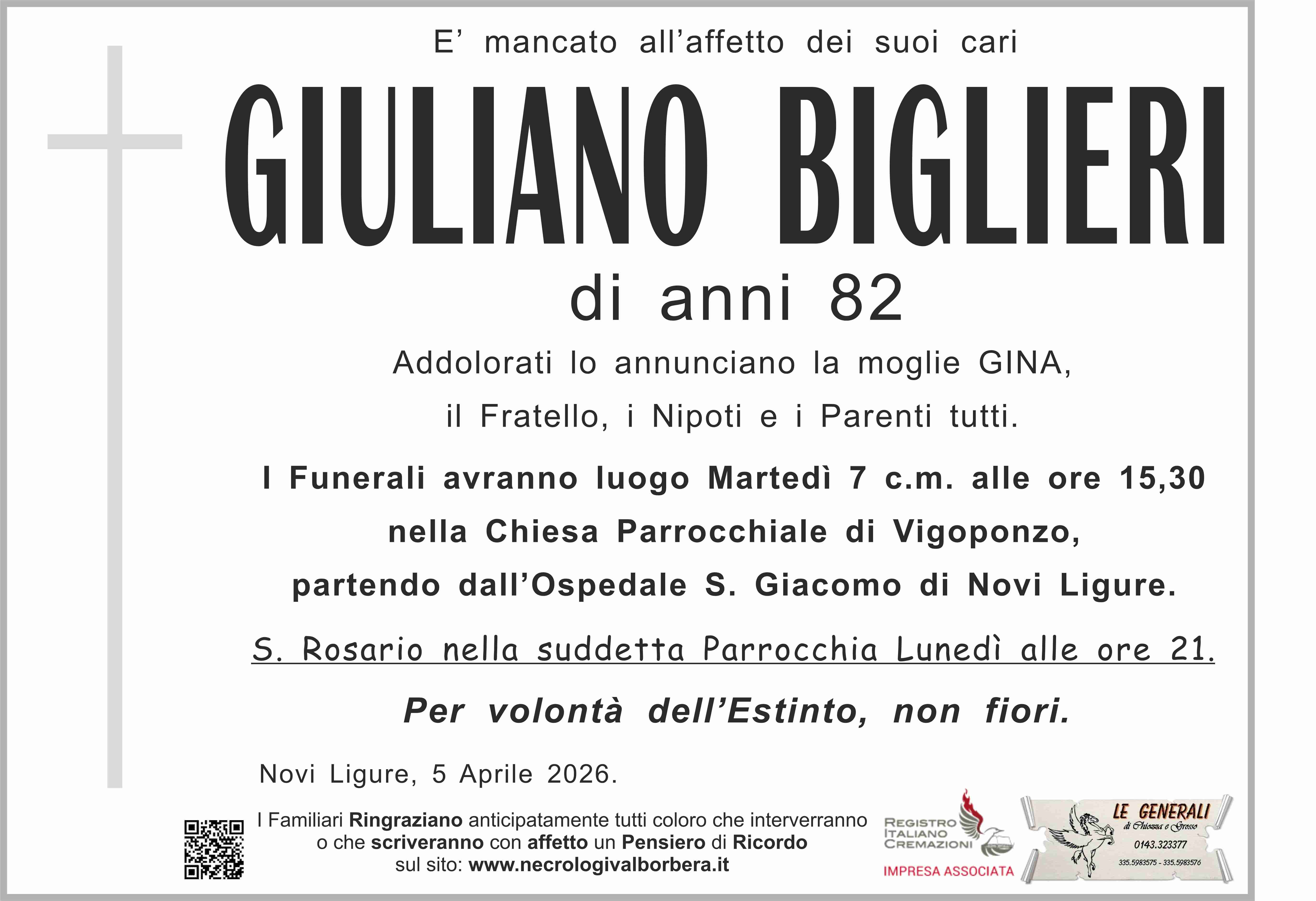 I familiari ringraziano anticipatamente tutti coloro che parteciperanno alla cerimonia funebre