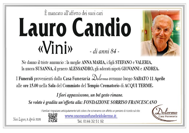 I familiari ringraziano anticipatamente tutti coloro che parteciperanno alla cerimonia funebre