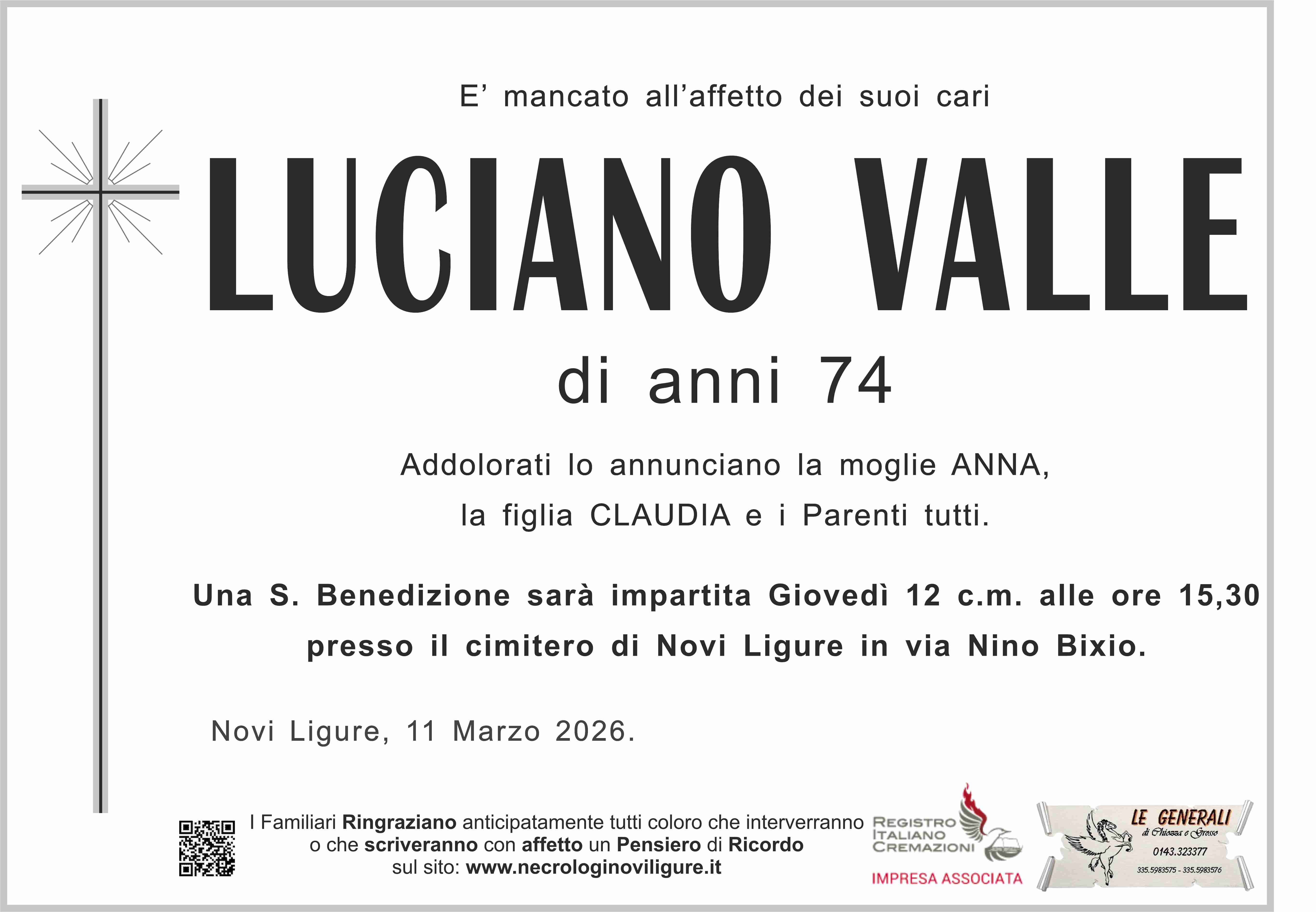 I familiari ringraziano anticipatamente tutti coloro che parteciperanno alla cerimonia funebre