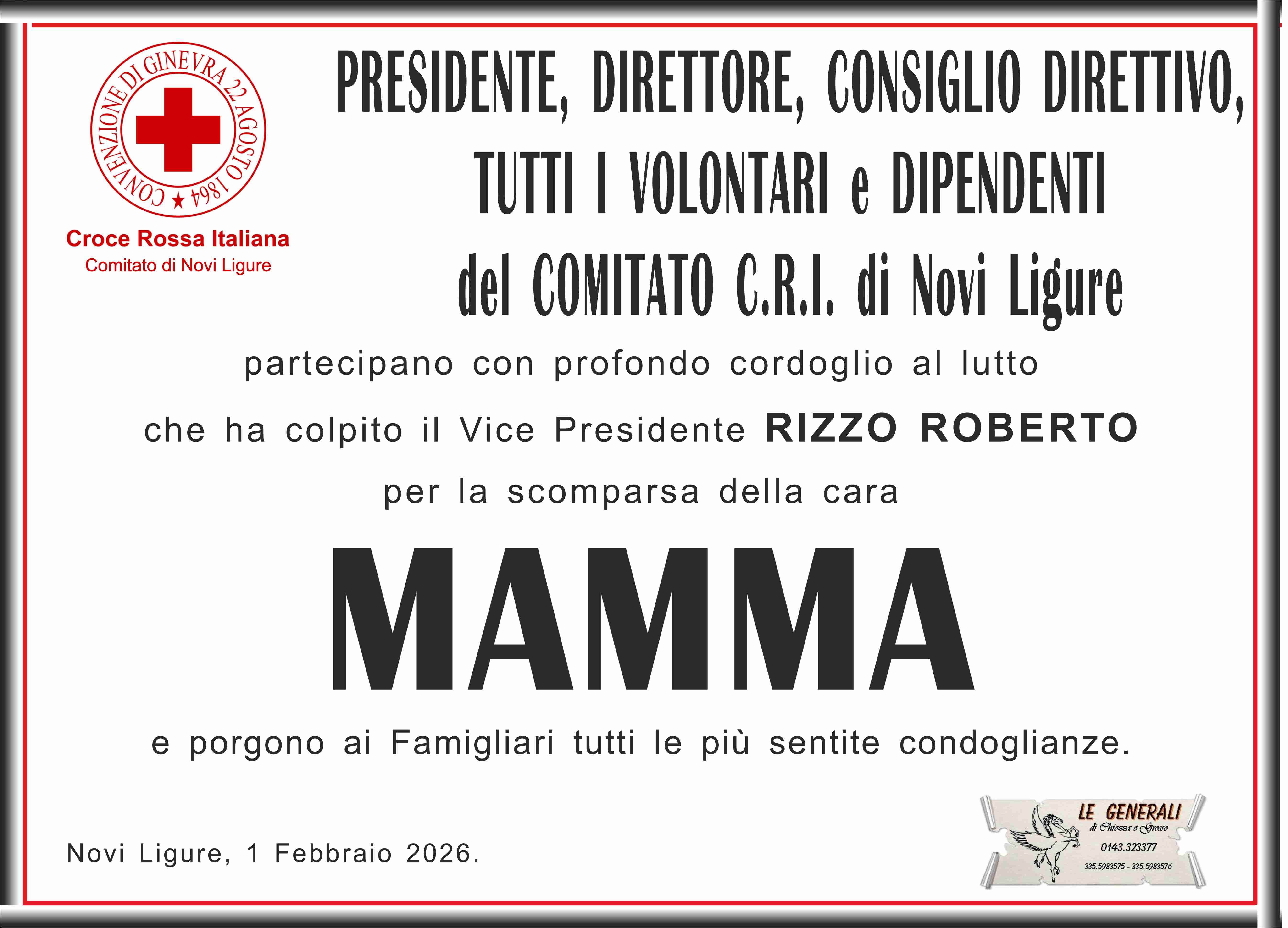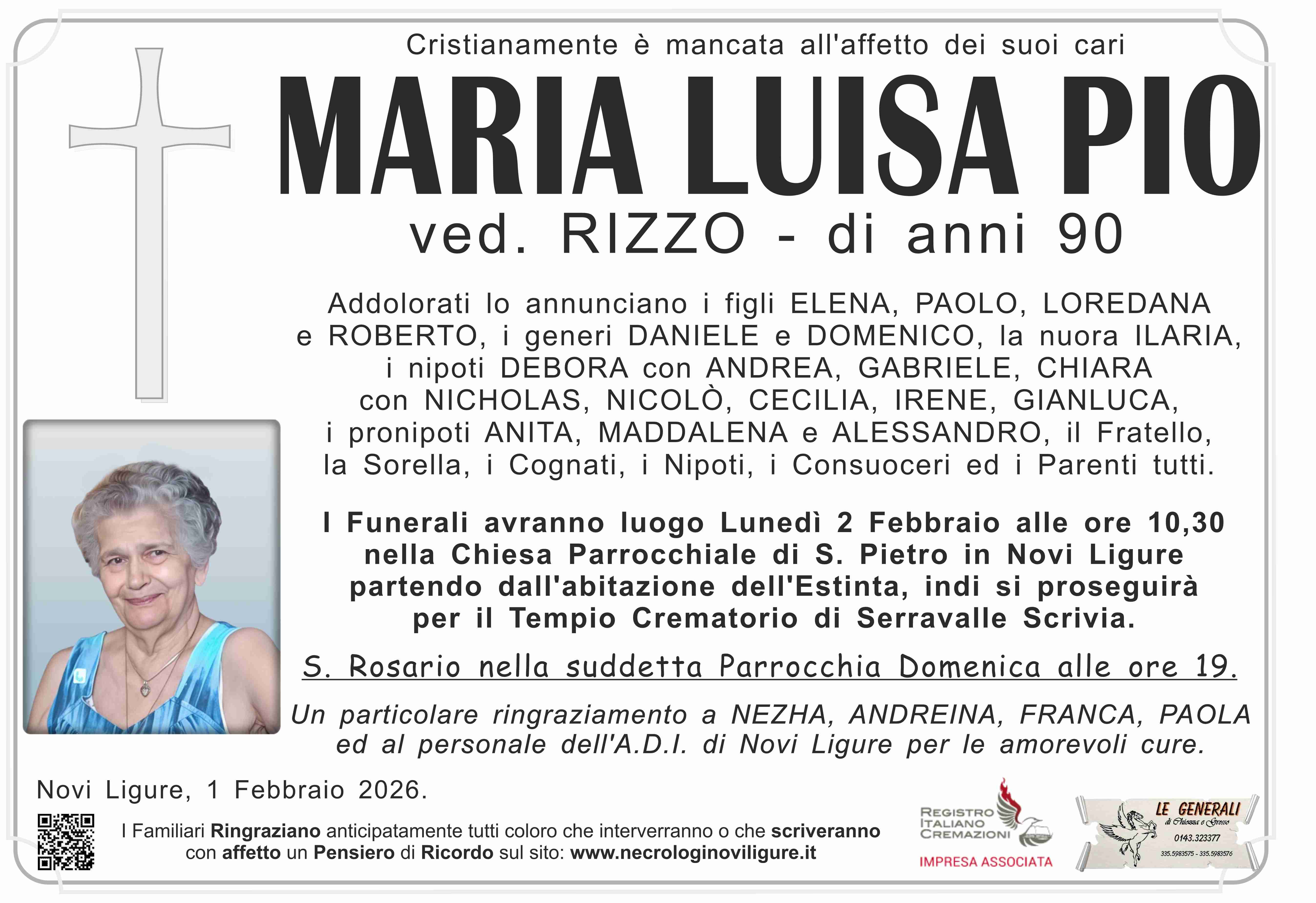 I familiari ringraziano anticipatamente tutti coloro che parteciperanno alla cerimonia funebre