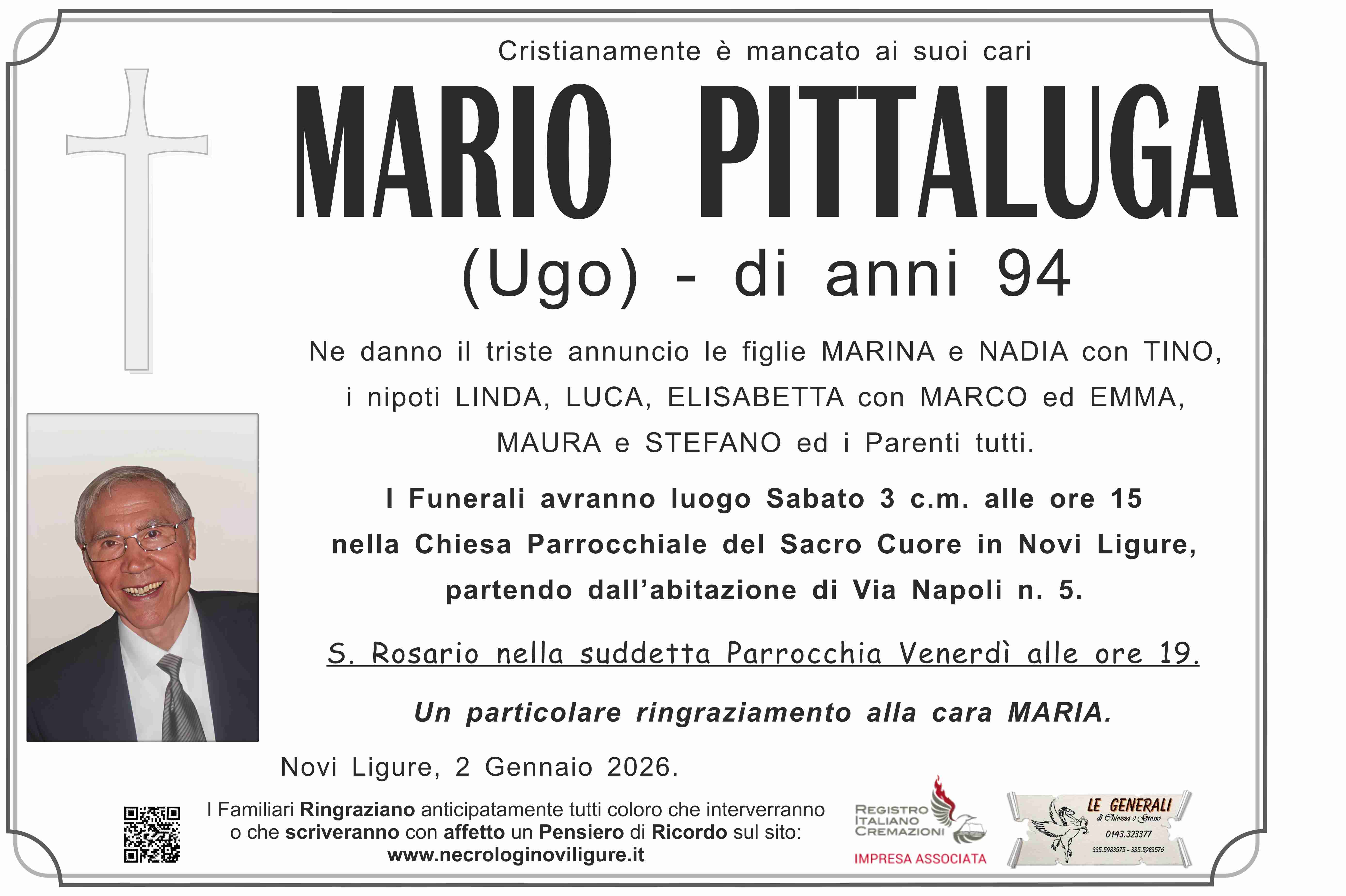 I familiari ringraziano anticipatamente tutti coloro che parteciperanno alla cerimonia funebre