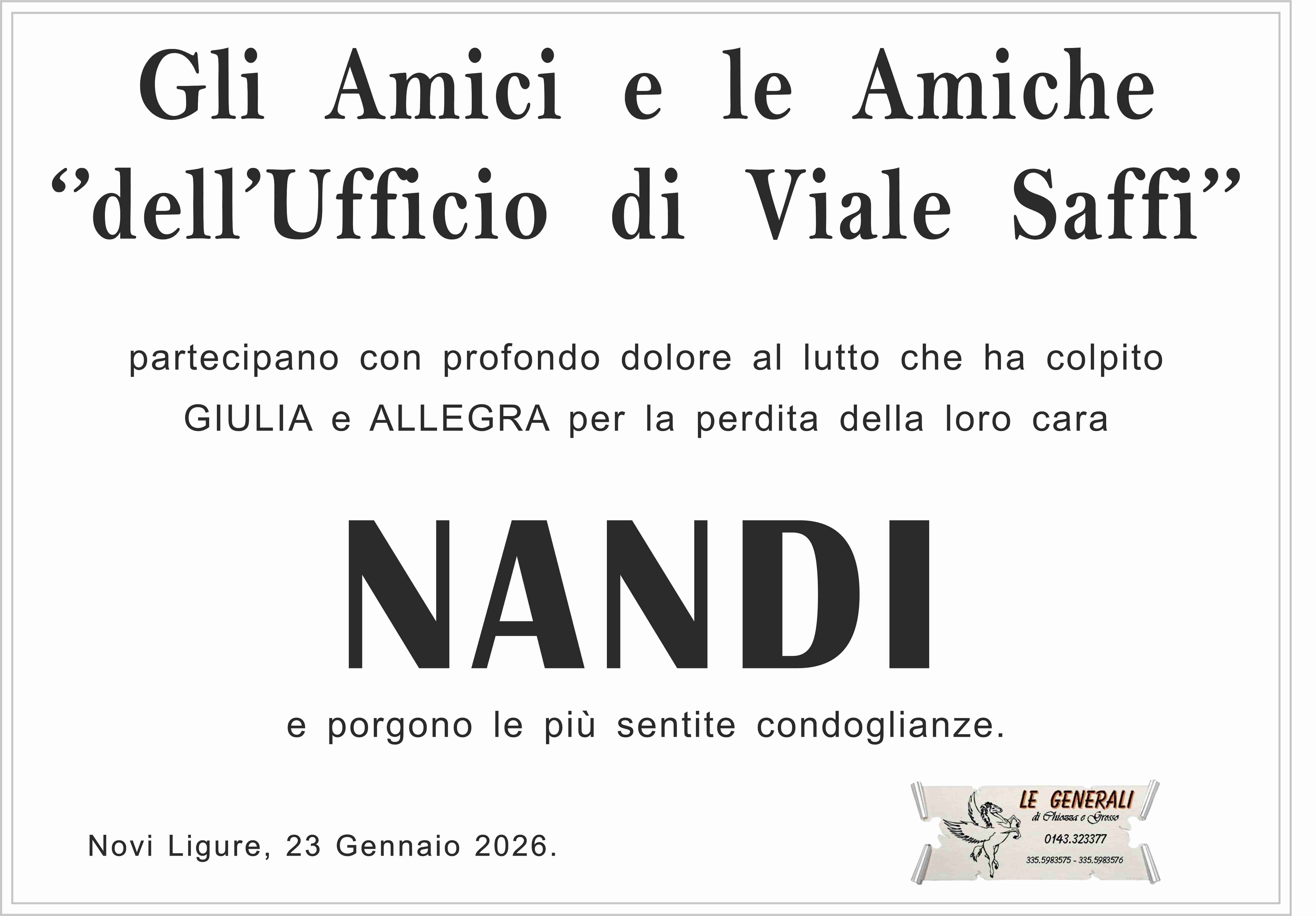 Giulia e Allegra vi porgo le mie condoglianze per la perdita della cara Nandi. Cecilia Borasi.