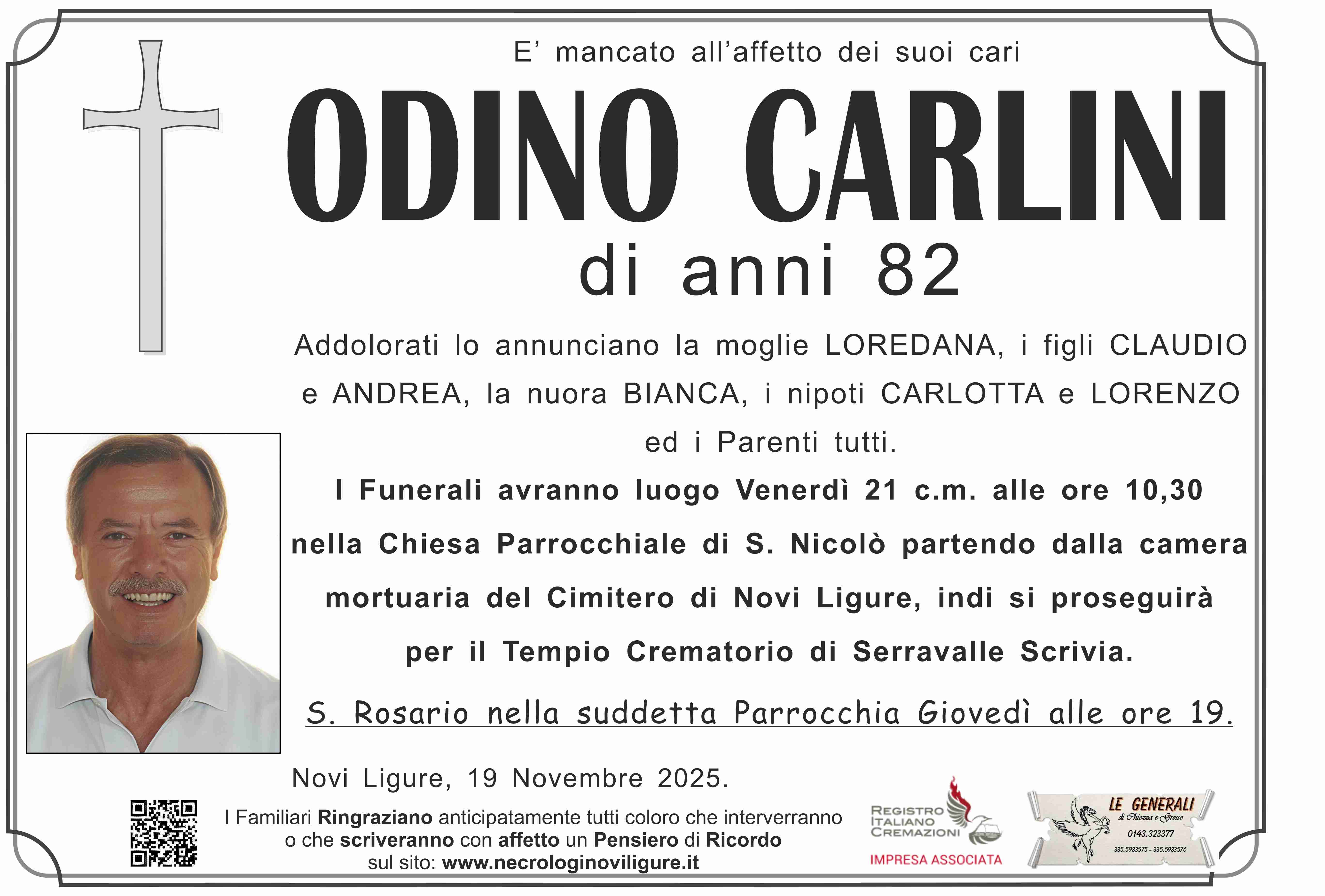 I familiari ringraziano anticipatamente tutti coloro che parteciperanno alla cerimonia funebre