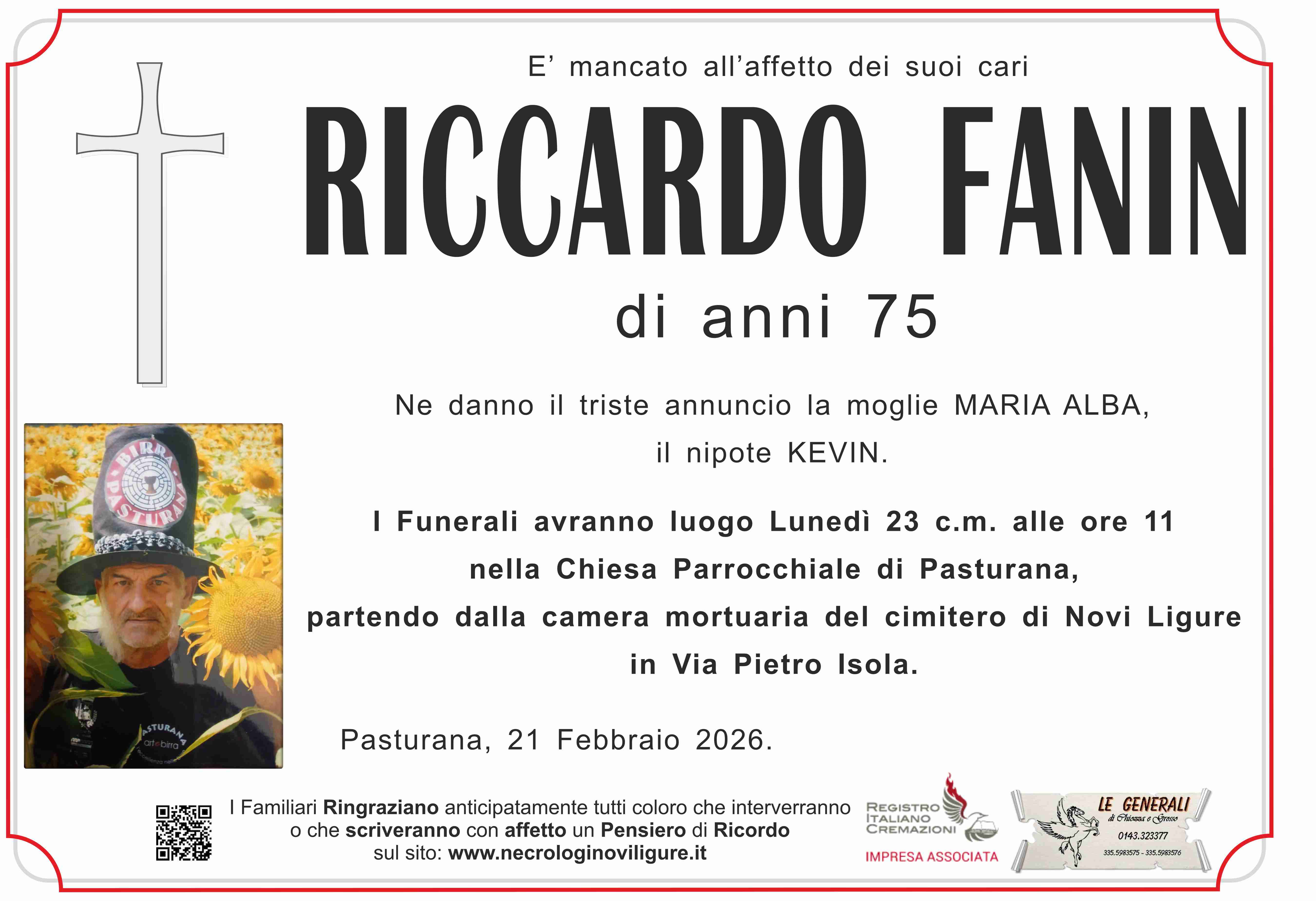 I familiari ringraziano anticipatamente tutti coloro che parteciperanno alla cerimonia funebre