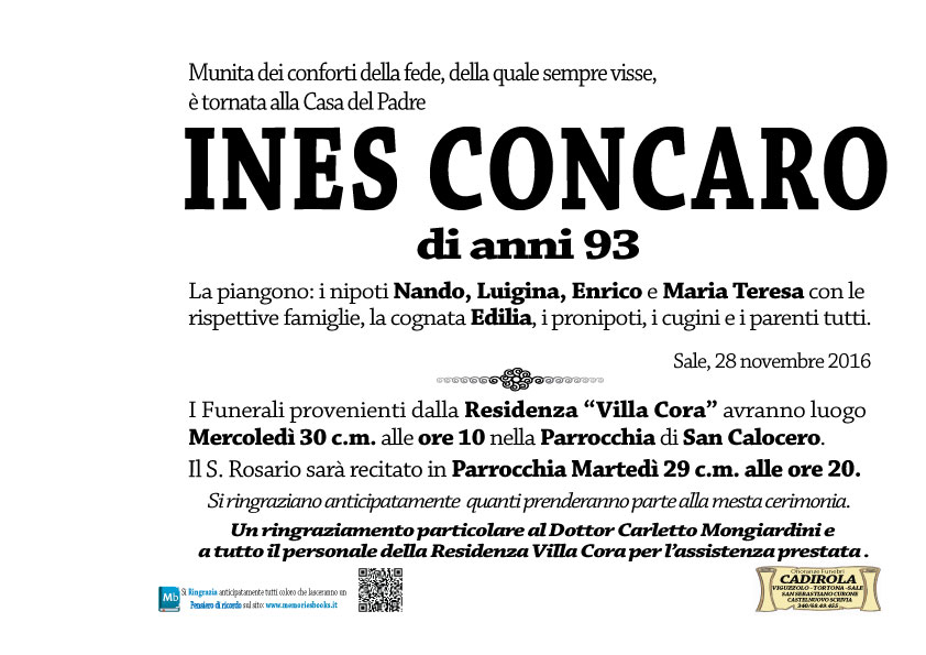 Clicca il pulsante qui sotto per visualizzare sulla mappa il luogo dove riposa INES CONCARO.