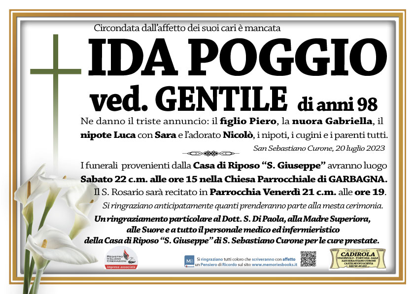 I familiari ringraziano anticipatamente tutti coloro che parteciperanno alla cerimonia funebre