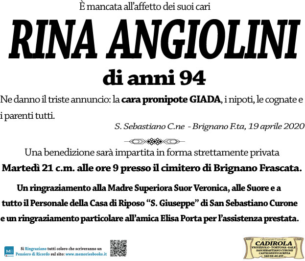 Clicca il pulsante qui sotto per visualizzare sulla mappa il luogo dove riposa RINA ANGIOLINI.