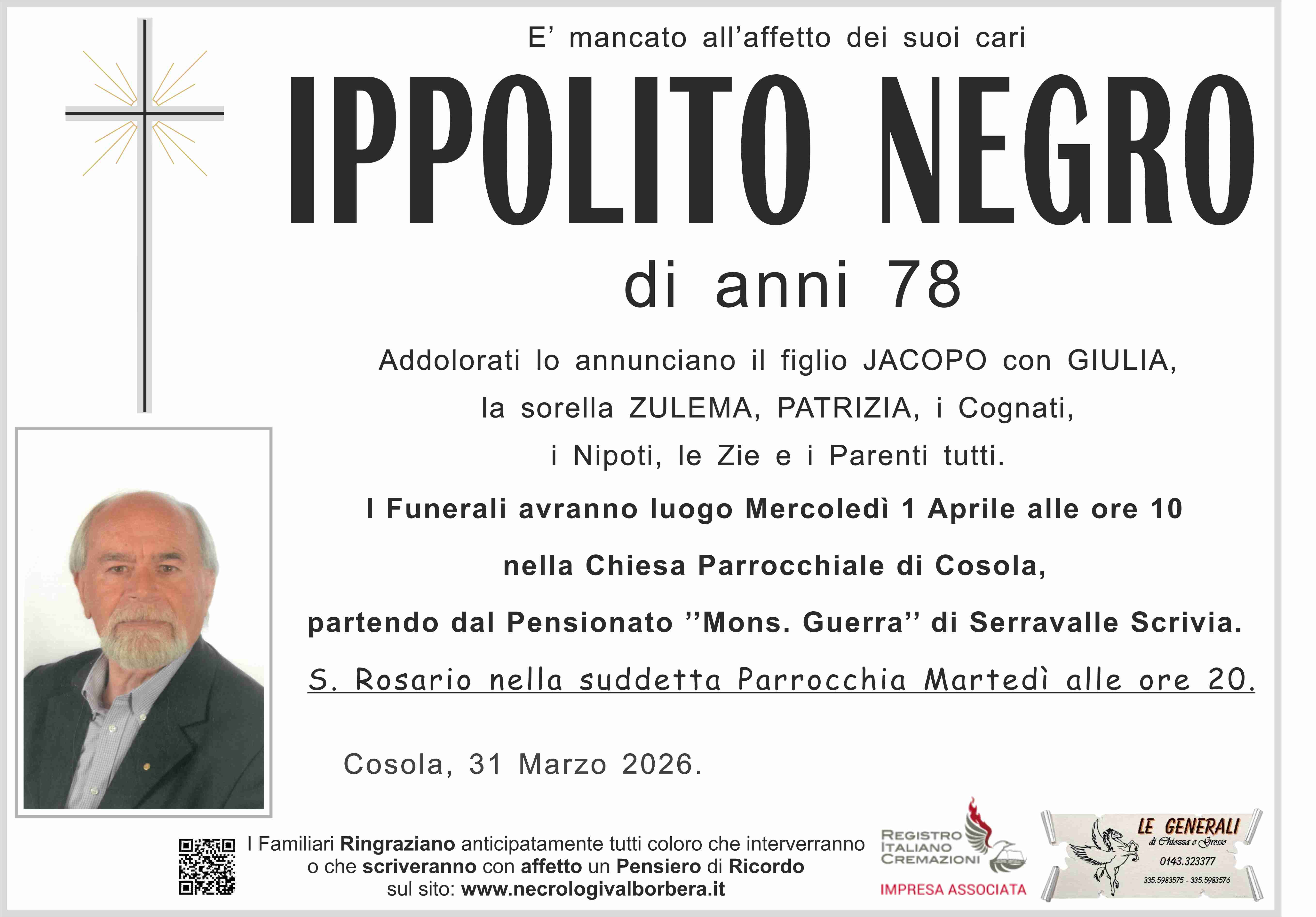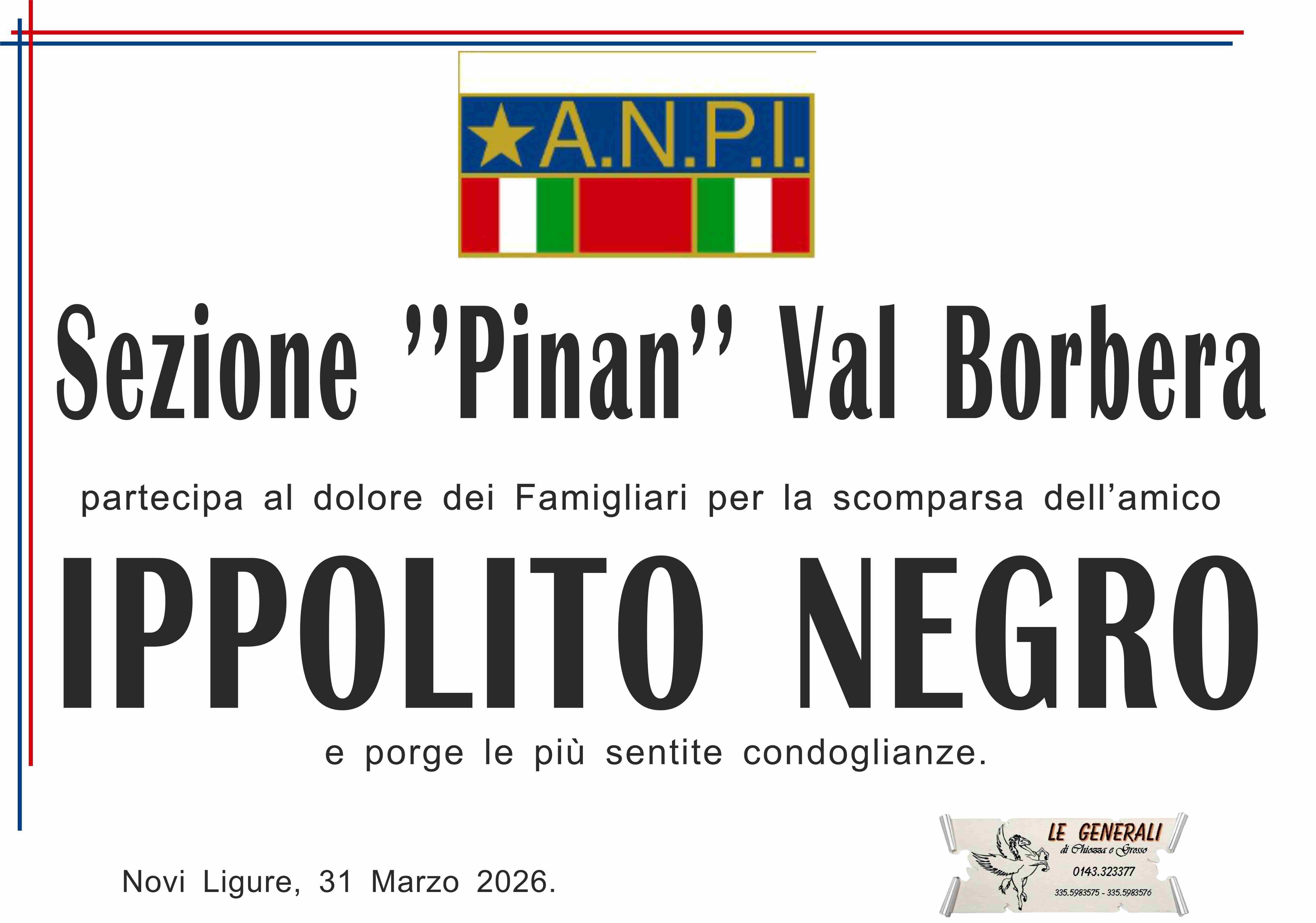 Ciao amico, grazie, abbiamo passato bei momenti e il tuo impegno negli incarichi sociali non lo dimenticherò e spero sia di esempio ai tuoi successori. A tutti i tuoi familiari porgo sentite condoglianze. Riposa in pace tra le tue montagne, i tuoi prati e boschi. Ciao Ippolito Teresa