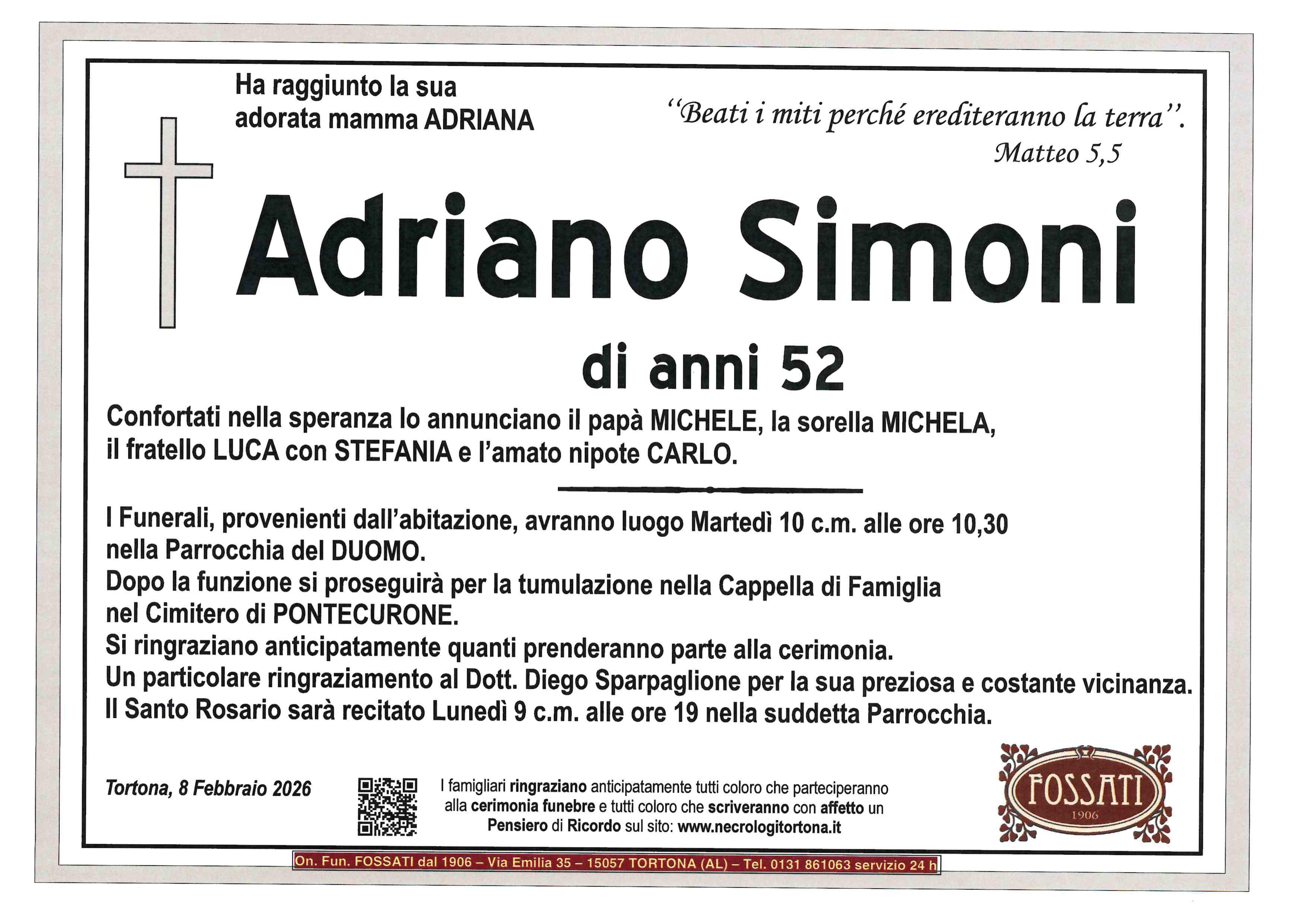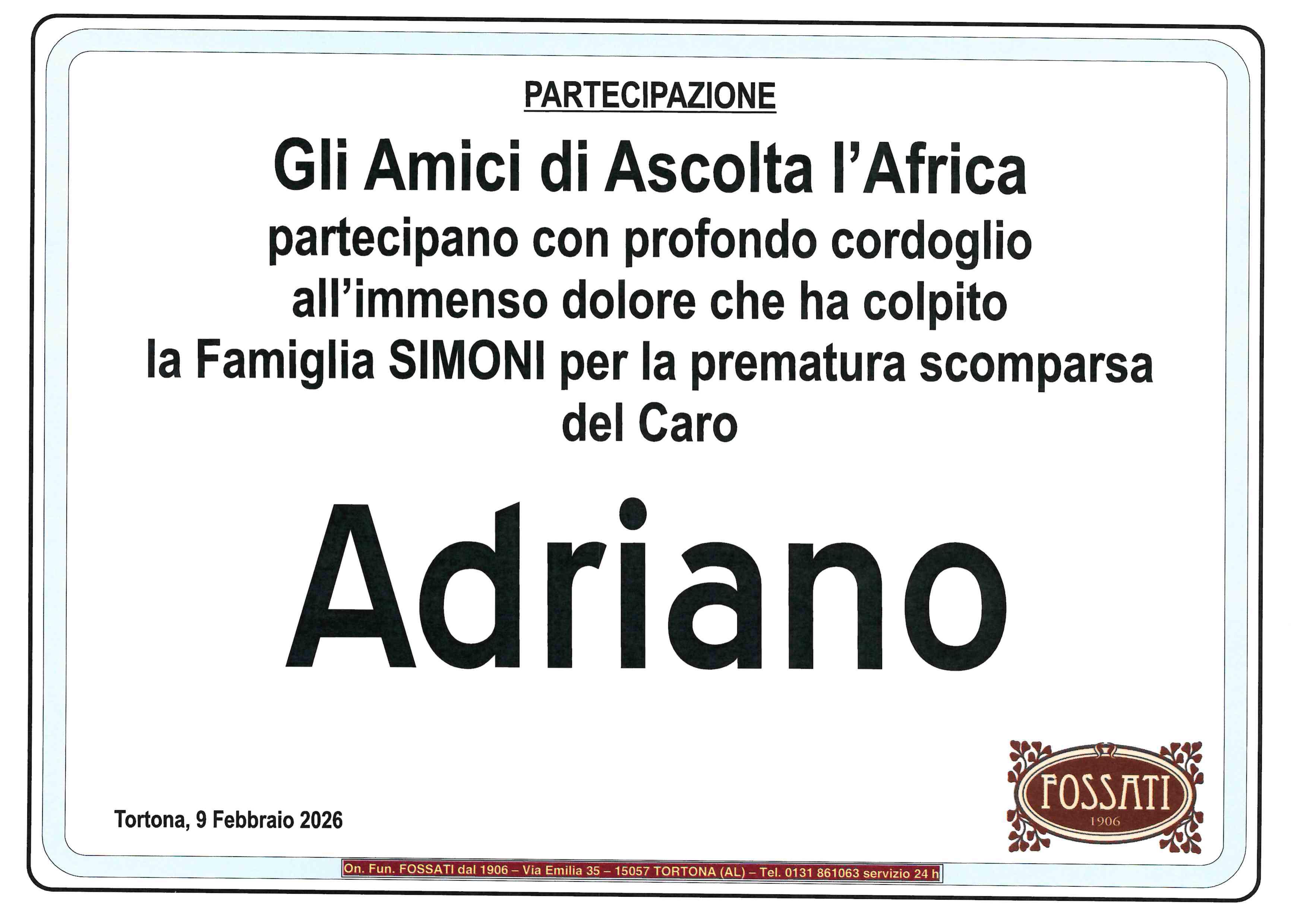 La Parrocchia di Sant’Antonio di Novi Ligure e l’Ente Caritativo di Sant’Antonio esprimono le più sentite condoglianze al Signor Luca e alla sua famiglia per la dolorosa perdita del caro fratello. Vi siamo vicini con la preghiera e l’affetto in questo momento di profondo dolore. Che il Signore doni pace eterna al defunto e conforto a tutti voi.