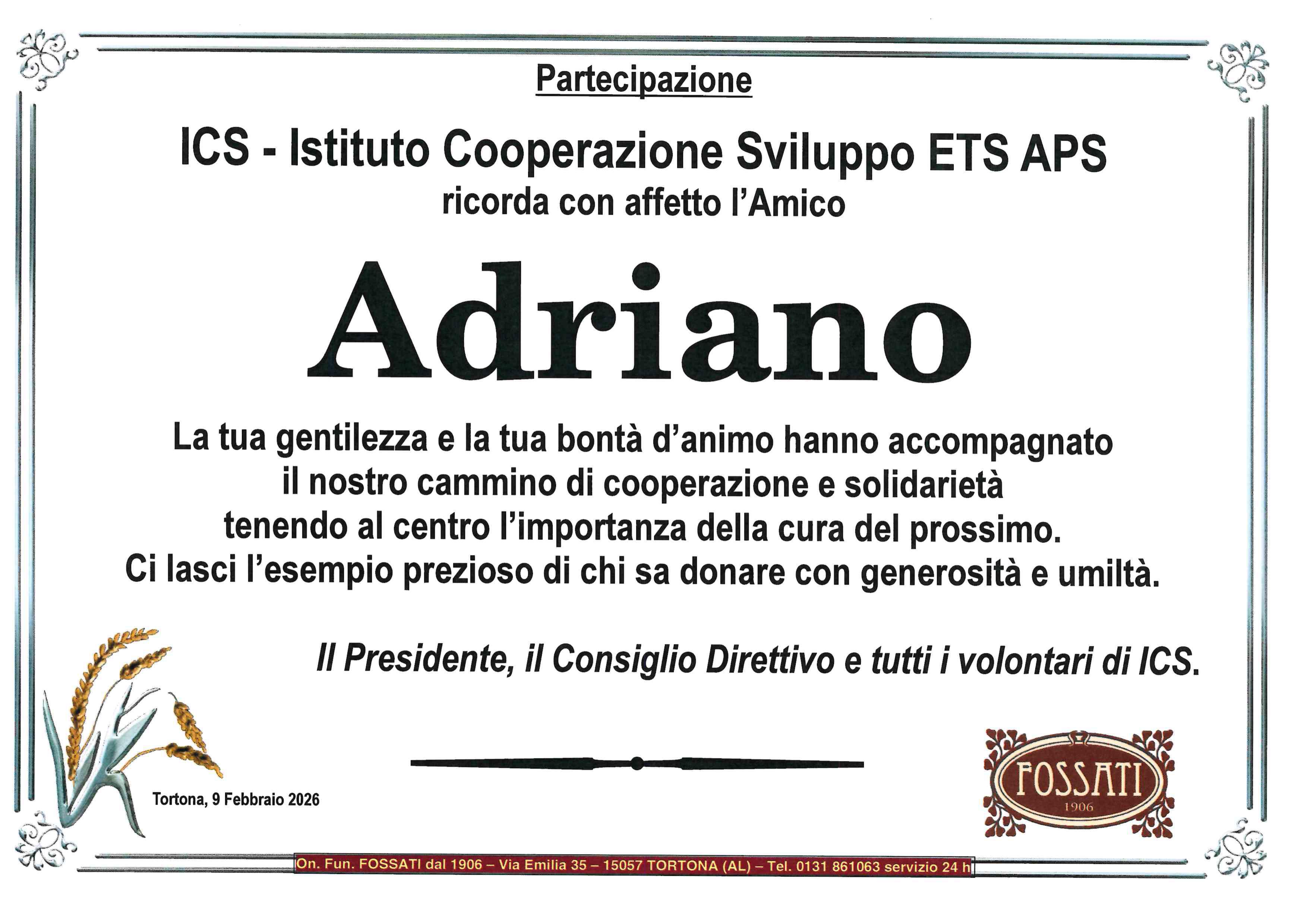 Ho avuto il privilegio di conoscere e collaborare con Adriano, persona per bene, garbata e capace, il suo ricordo rimarrà per sempre nella memoria. Esprimo le mie più sentite condoglianze a Luca ed ai famigliari.