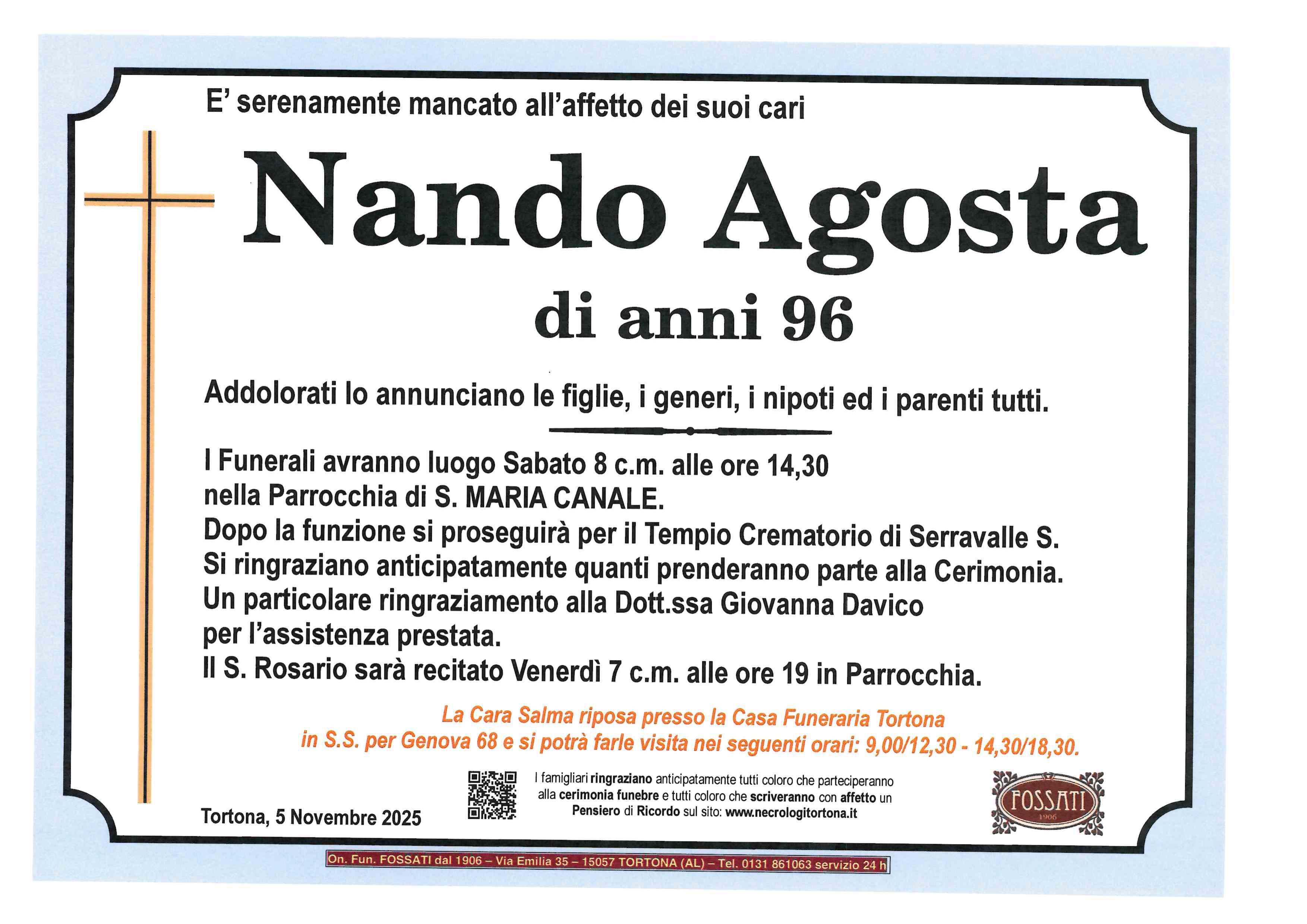 I familiari ringraziano anticipatamente tutti coloro che parteciperanno alla cerimonia funebre