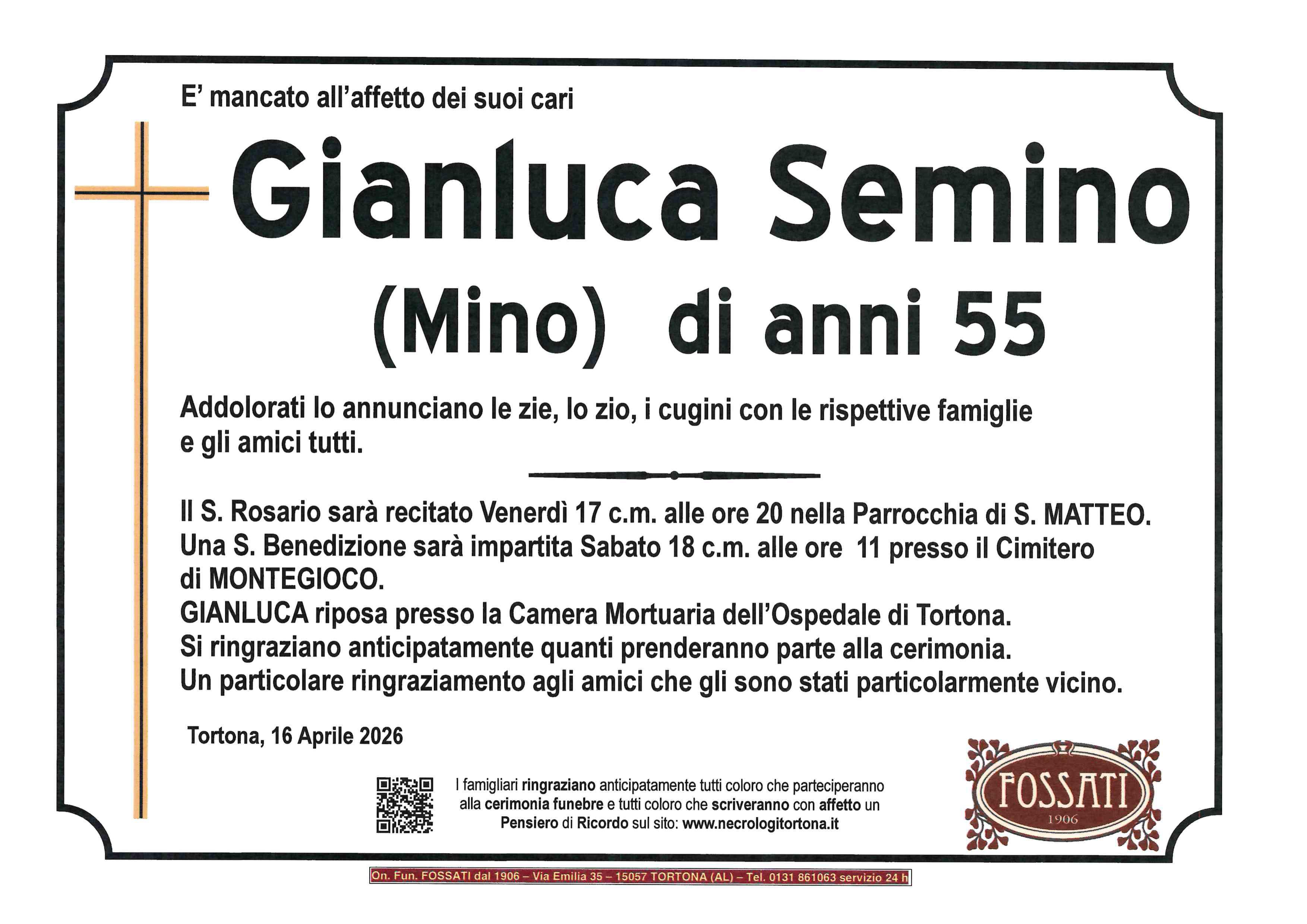 I familiari ringraziano anticipatamente tutti coloro che parteciperanno alla cerimonia funebre
