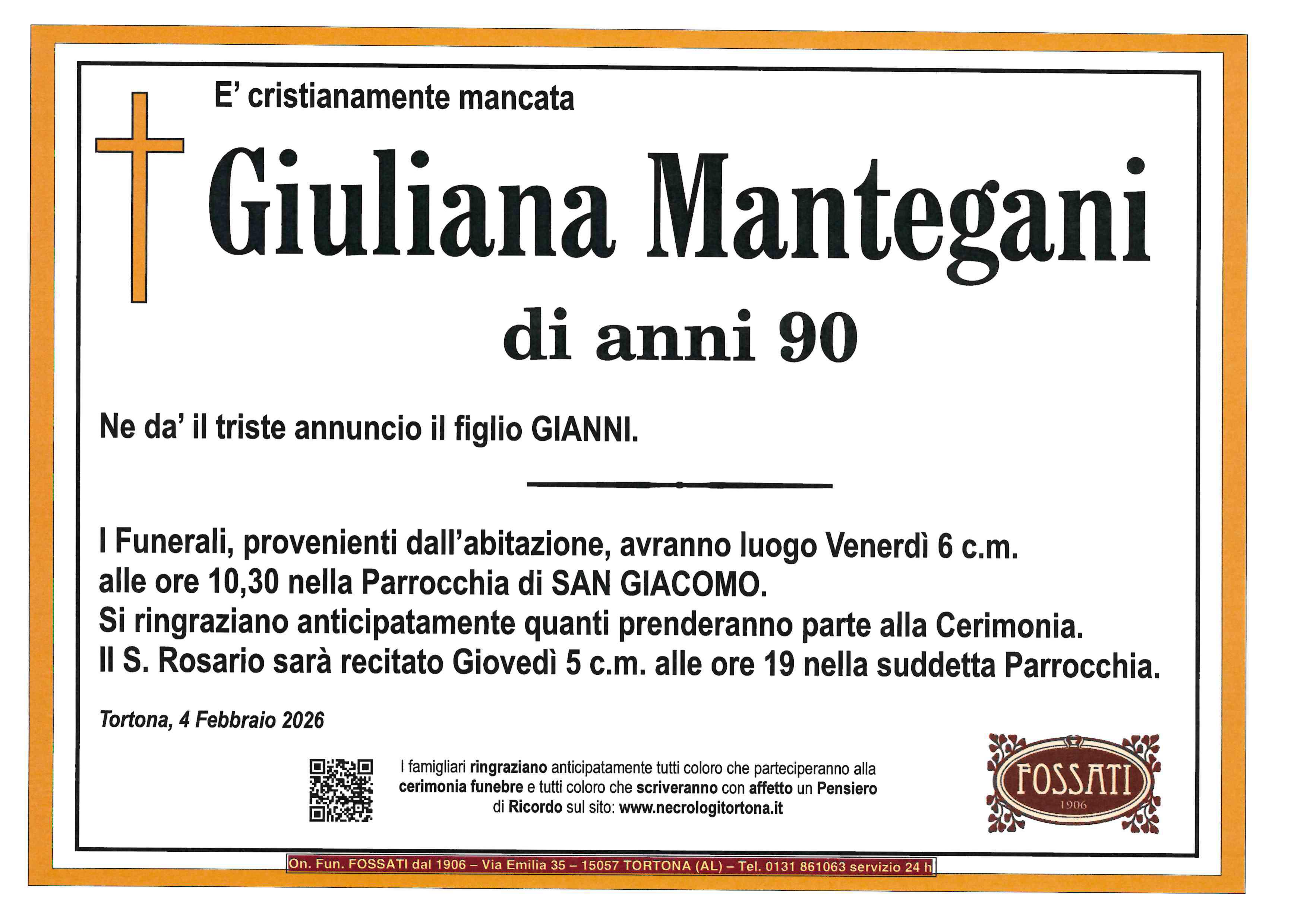 I familiari ringraziano anticipatamente tutti coloro che parteciperanno alla cerimonia funebre