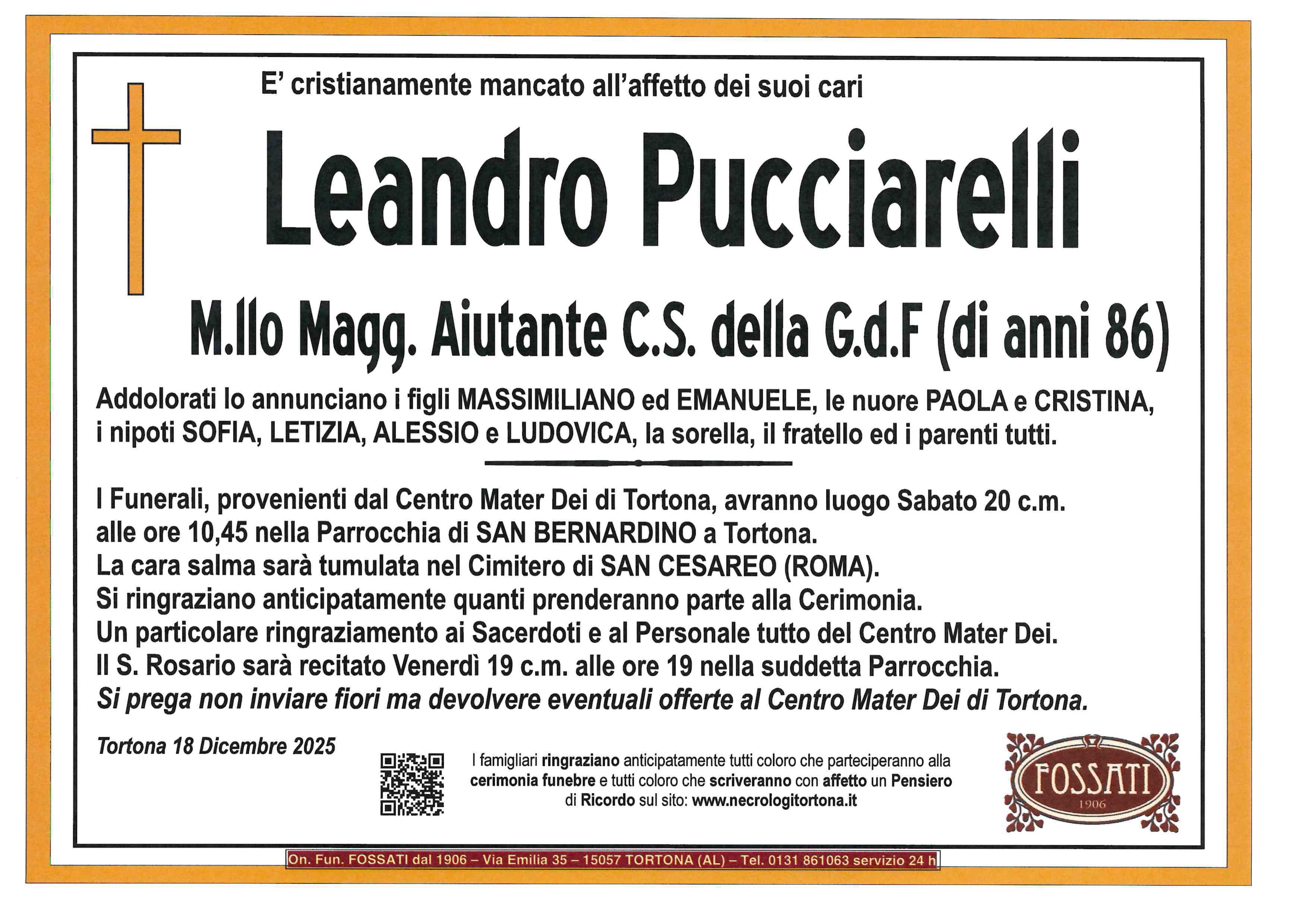 I familiari ringraziano anticipatamente tutti coloro che parteciperanno alla cerimonia funebre