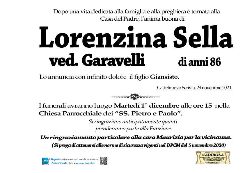 Clicca il pulsante qui sotto per visualizzare sulla mappa il luogo dove riposa LORENZINA RITA SELLA GARAVELLI.