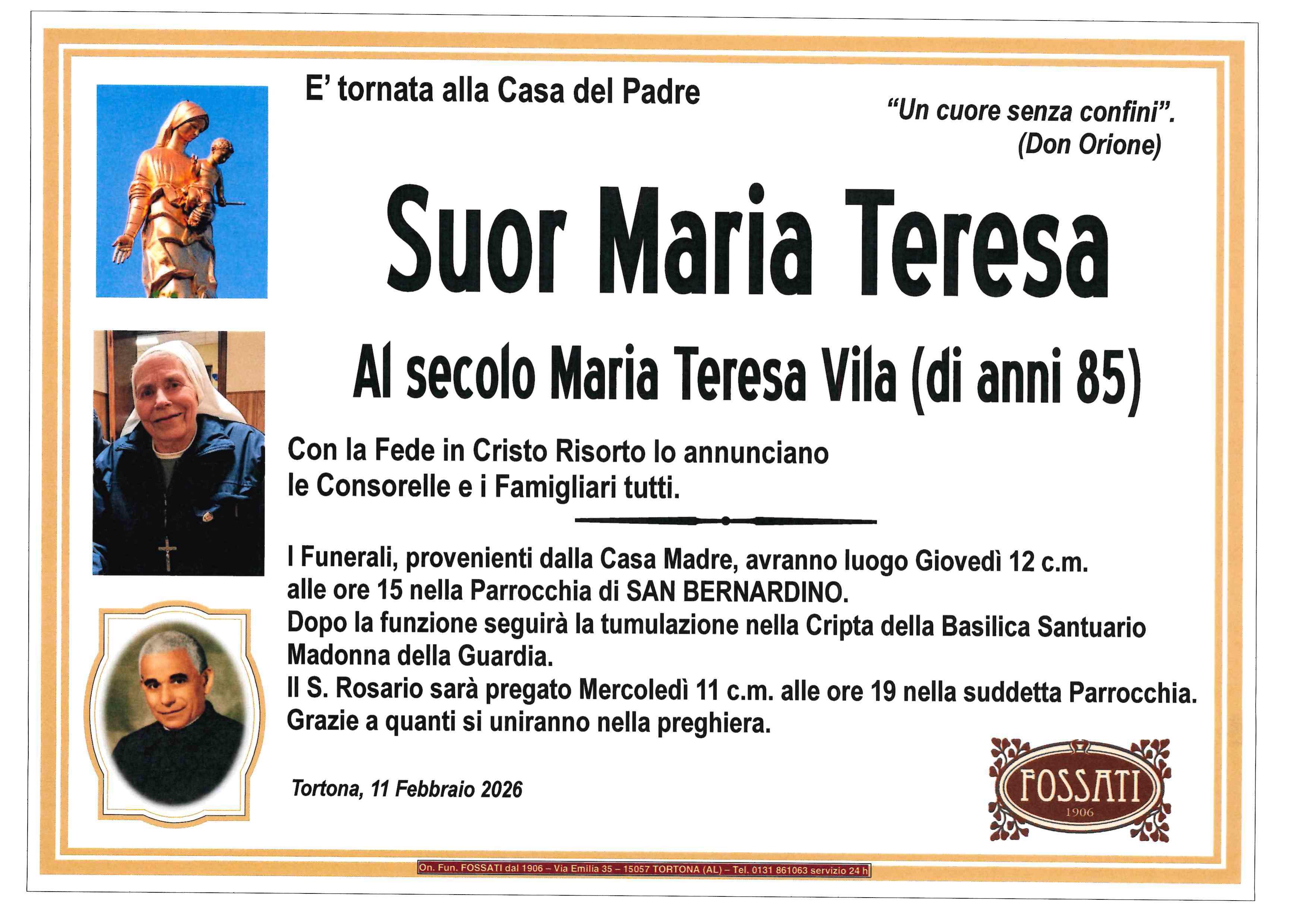Suor Vila, continueremo a seguire il tuo esempio. Hai praticato la carità ispirandoti agli insegnamenti di san Luigi Orione, operando tanto bene tra i malati, i poveri ed i bisognosi di Dio. Grazie.