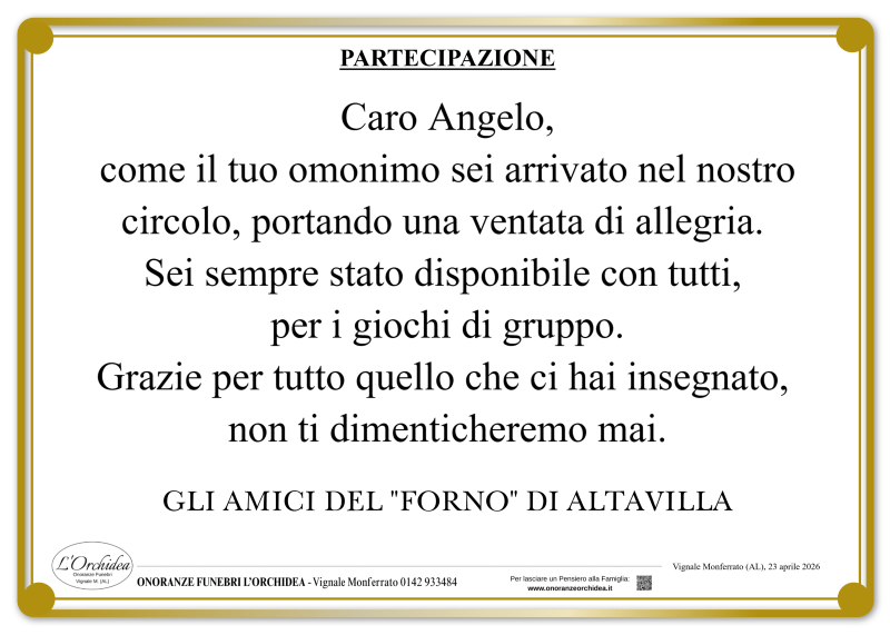 I familiari ringraziano anticipatamente tutti coloro che parteciperanno alla cerimonia funebre