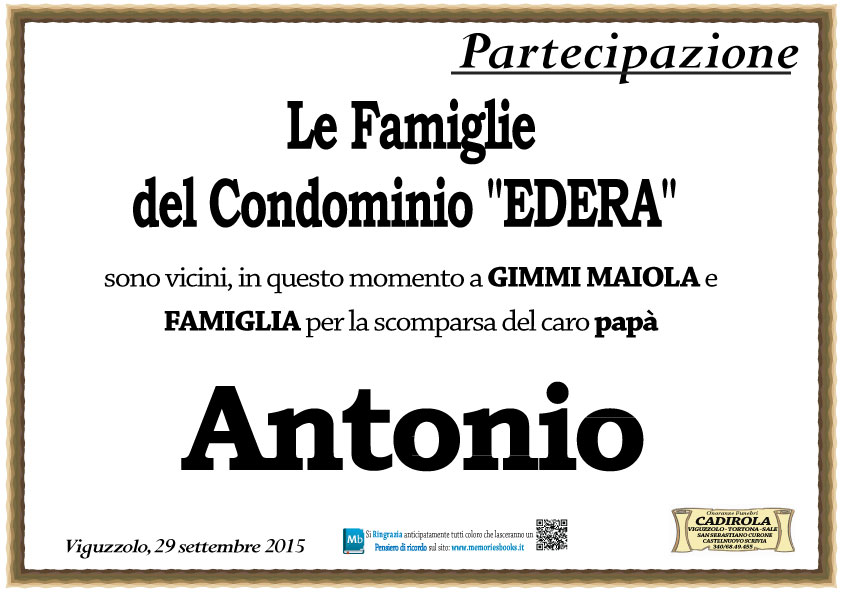Clicca il pulsante qui sotto per visualizzare sulla mappa il luogo dove riposa ANTONIO MAIOLA.