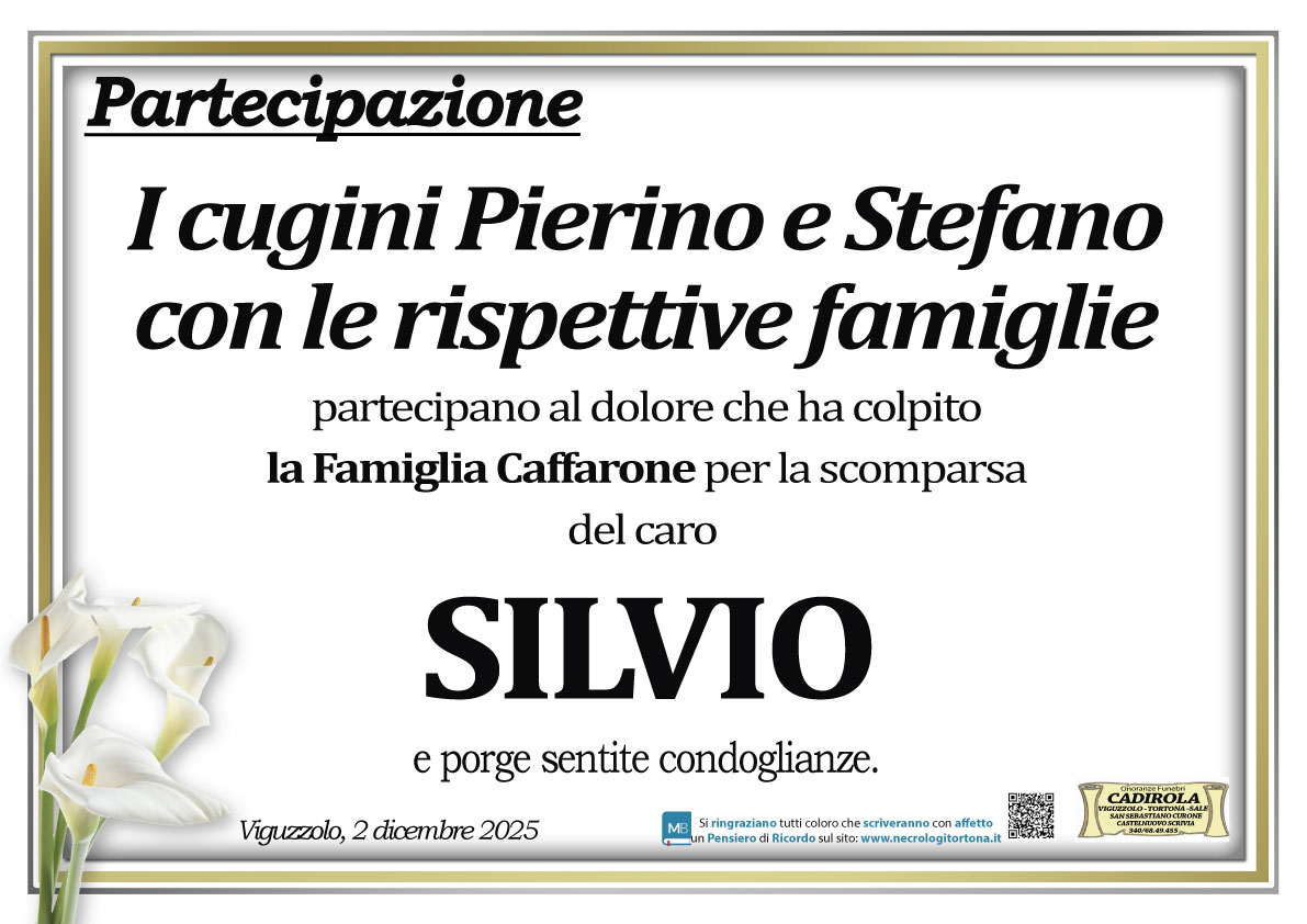 Addolorata per la scomparsa del caro Silvio, porgo le mie condoglianze a tutta la famiglia e in particolare un grande abbraccio a Piera. Maria Teresa Monetti