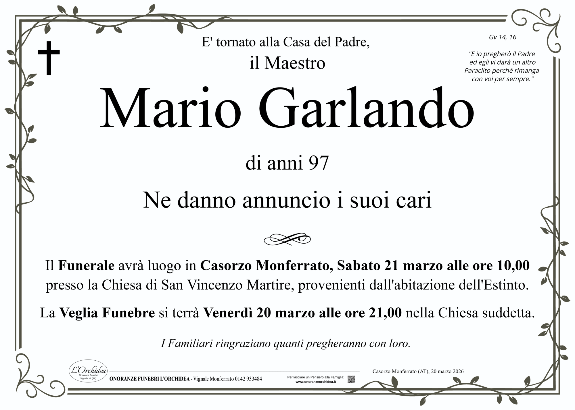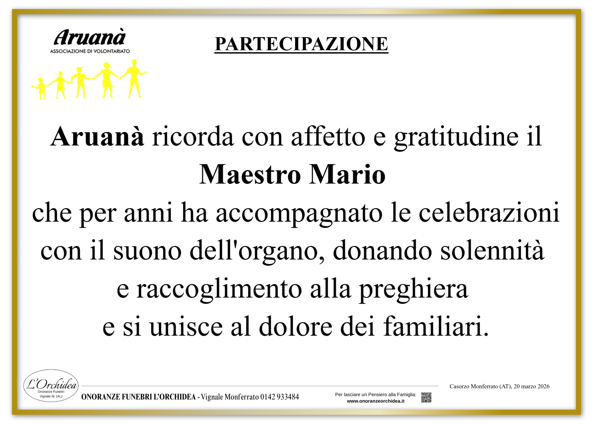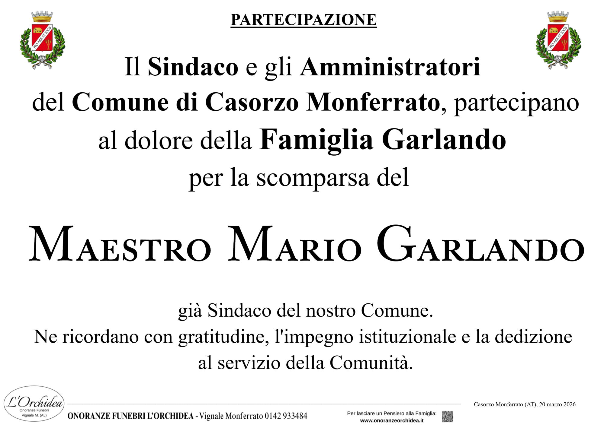 I familiari ringraziano anticipatamente tutti coloro che parteciperanno alla cerimonia funebre