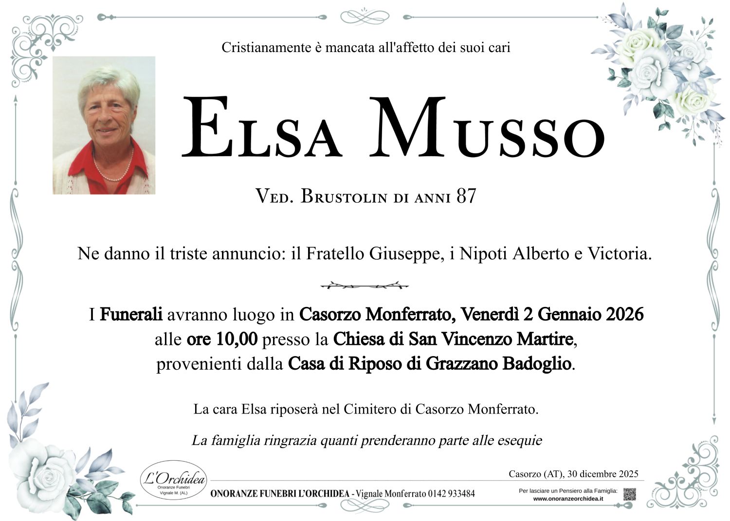 I familiari ringraziano anticipatamente tutti coloro che parteciperanno alla cerimonia funebre