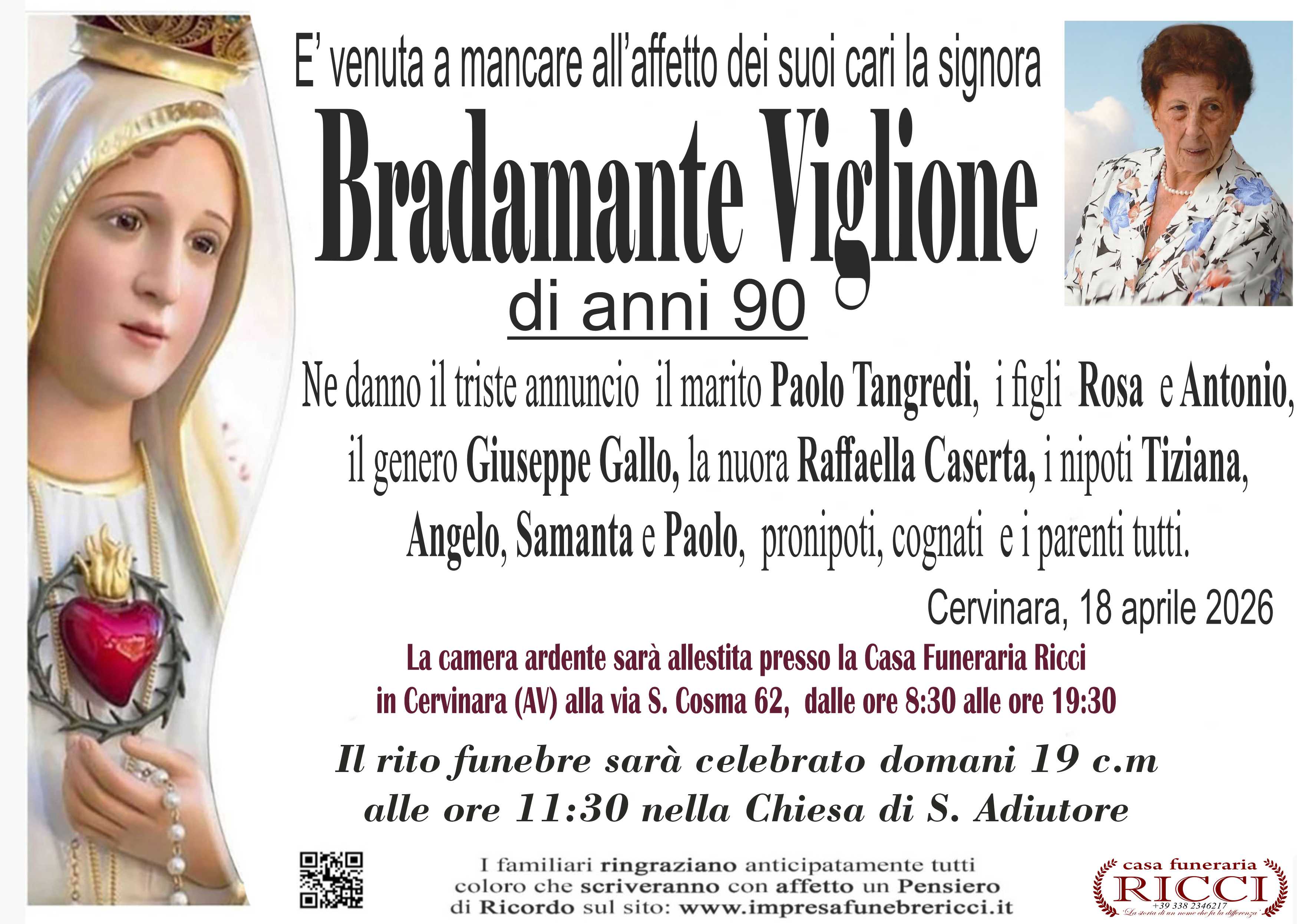 I familiari ringraziano anticipatamente tutti coloro che parteciperanno alla cerimonia funebre