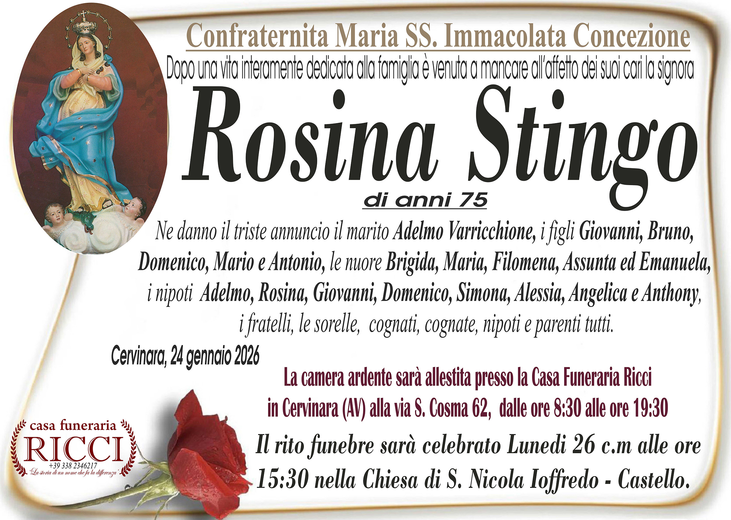 I familiari ringraziano anticipatamente tutti coloro che parteciperanno alla cerimonia funebre