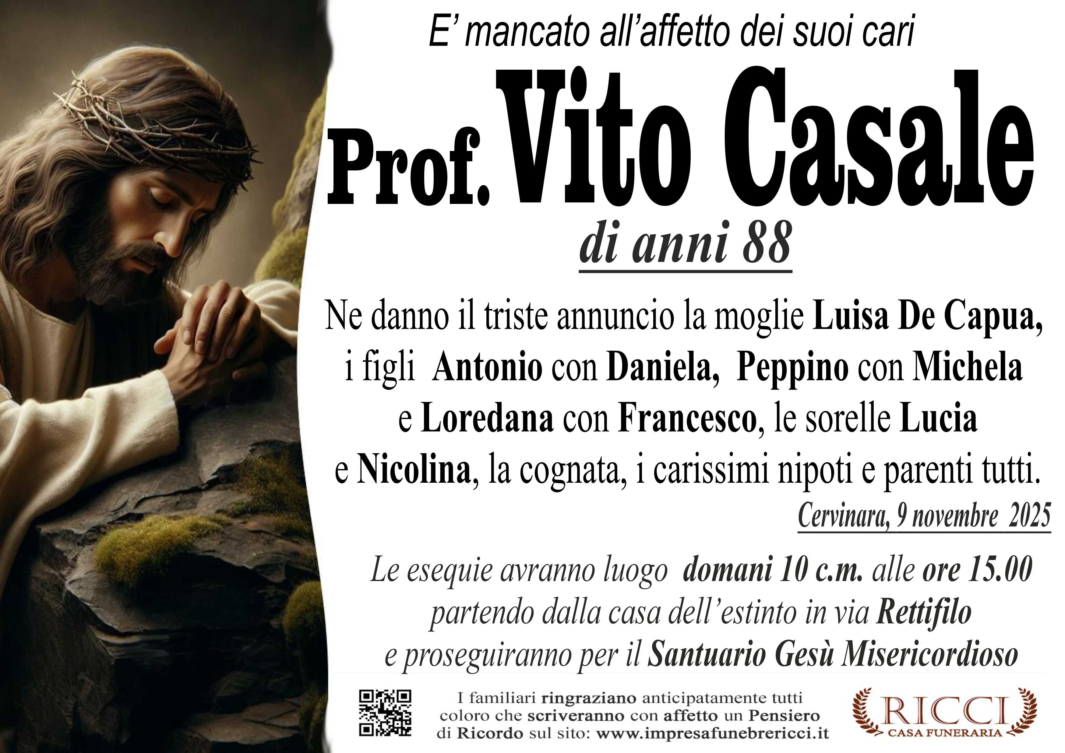 CON IL PROF VITO CASALE CI LASCIA UN PEZZO DI STORIA POLITICA E SOCIALE DELLA NS COMUNITA. CON QUESTO COMMOSSO RICORDO PARTECIPO AL DOLORE DELLA FAMIGLIA