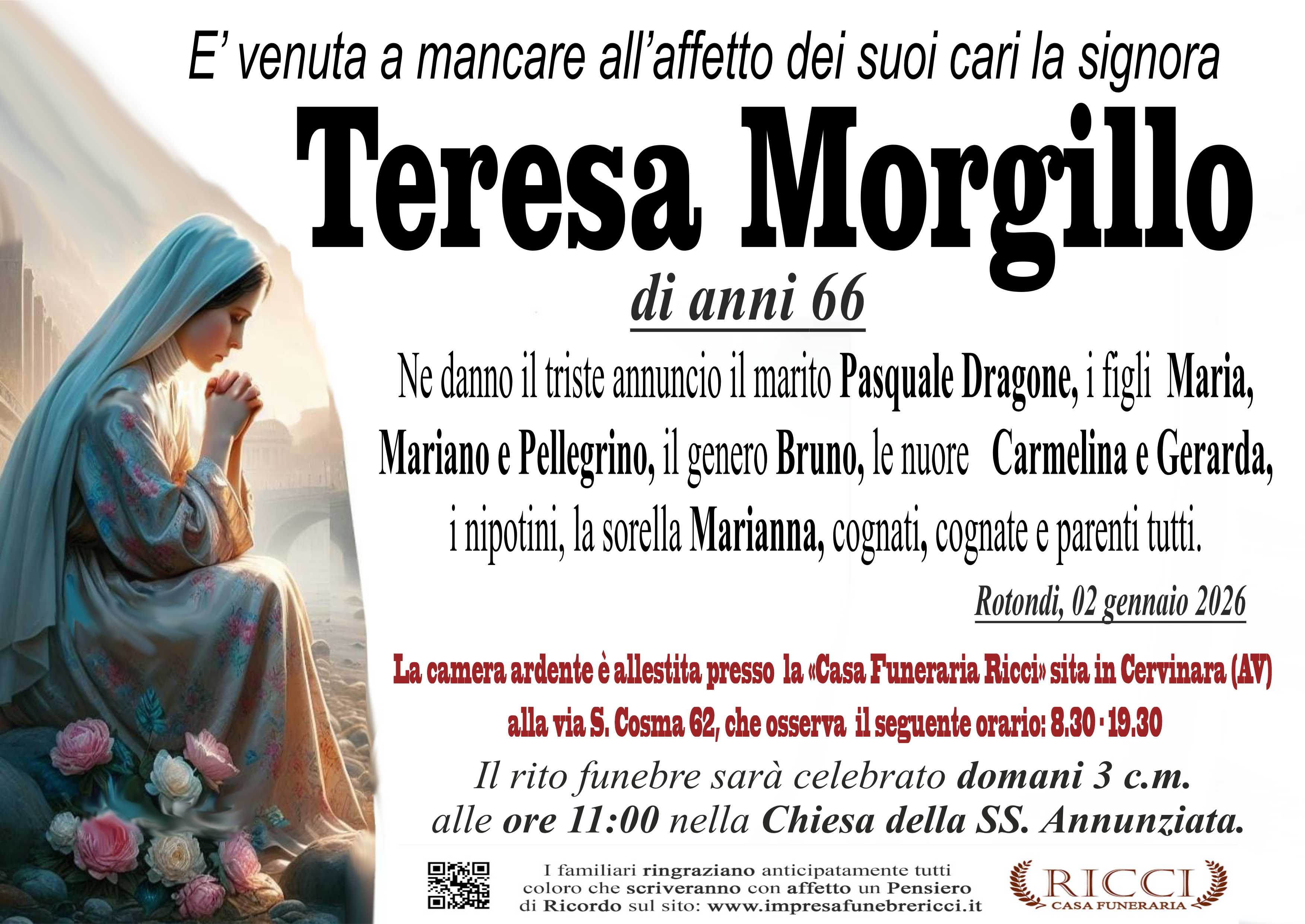 I familiari ringraziano anticipatamente tutti coloro che parteciperanno alla cerimonia funebre