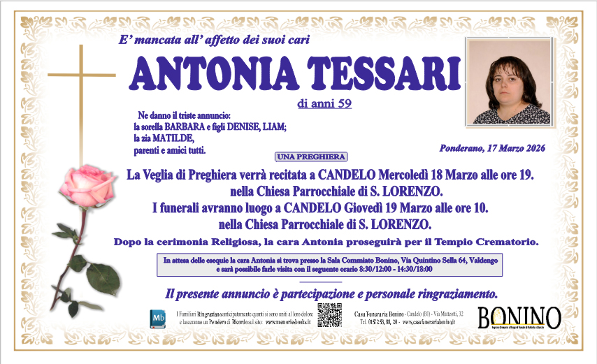 I familiari ringraziano anticipatamente tutti coloro che parteciperanno alla cerimonia funebre