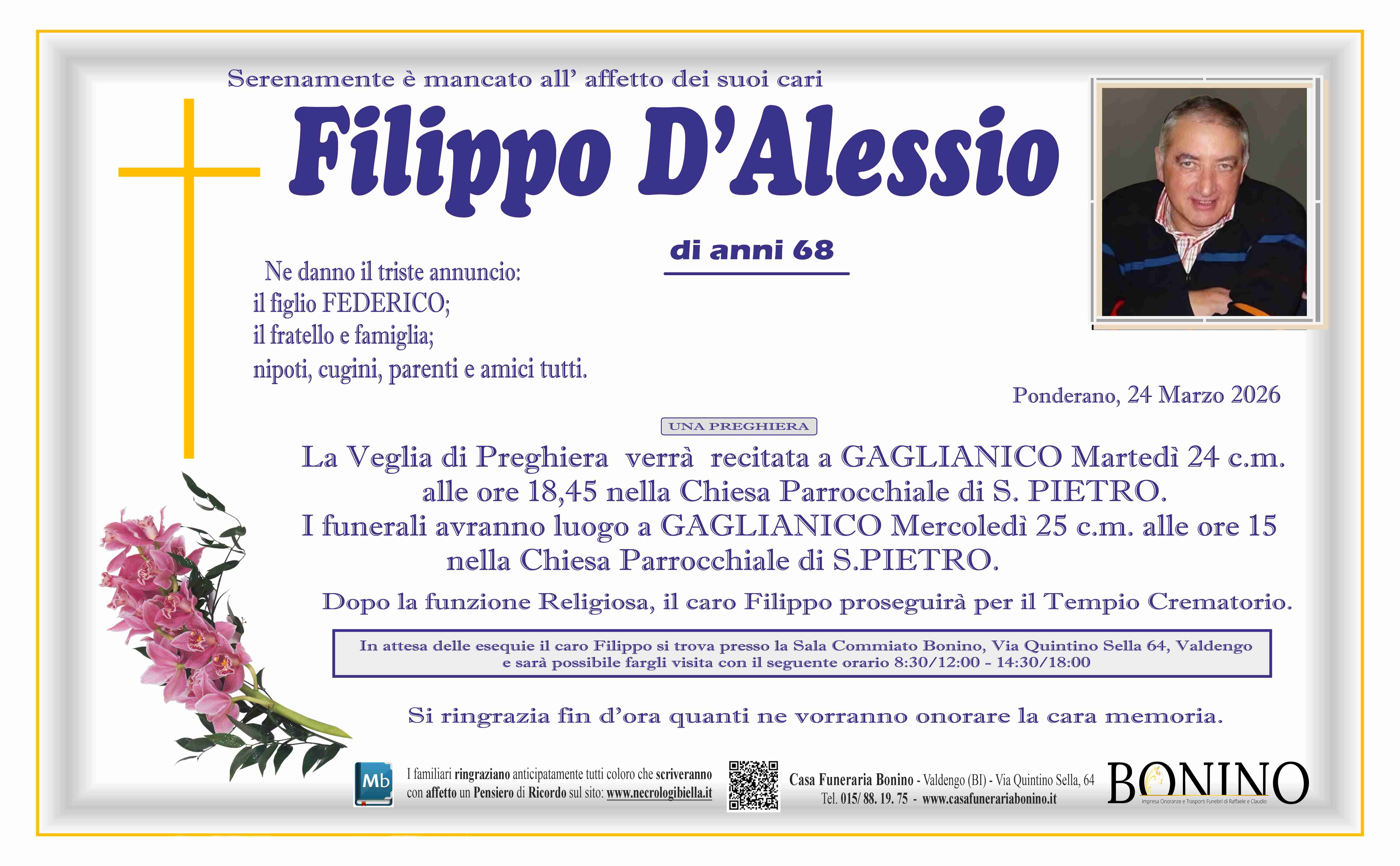 I familiari ringraziano anticipatamente tutti coloro che parteciperanno alla cerimonia funebre