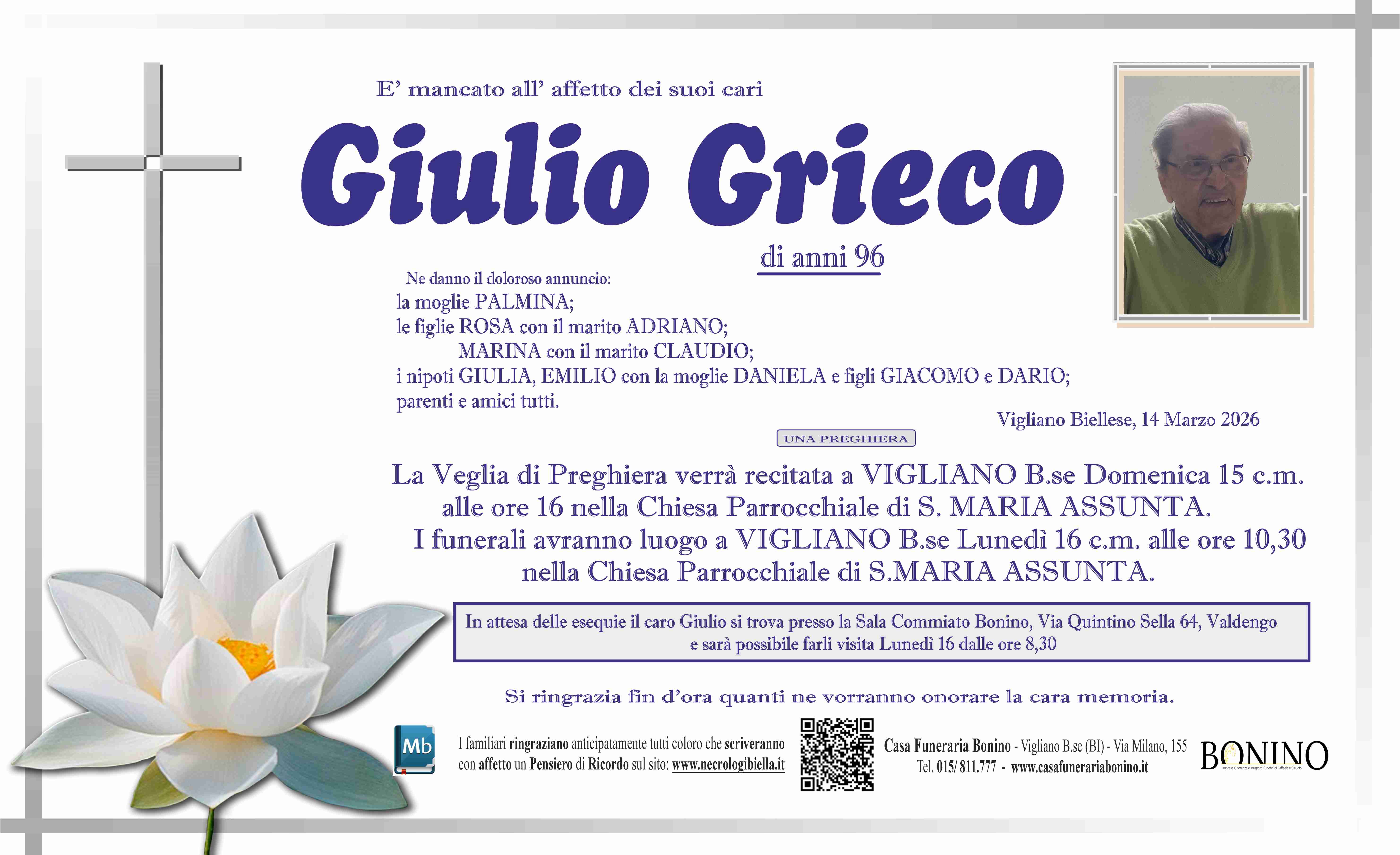 I familiari ringraziano anticipatamente tutti coloro che parteciperanno alla cerimonia funebre