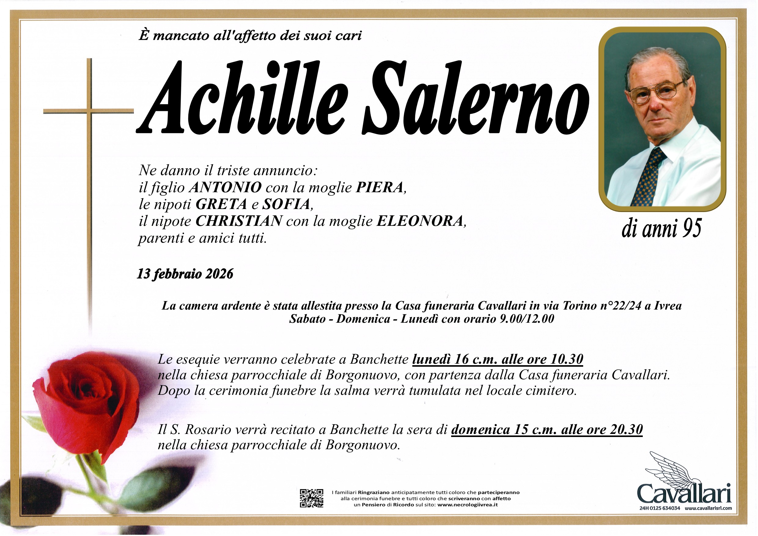 I familiari ringraziano anticipatamente tutti coloro che parteciperanno alla cerimonia funebre